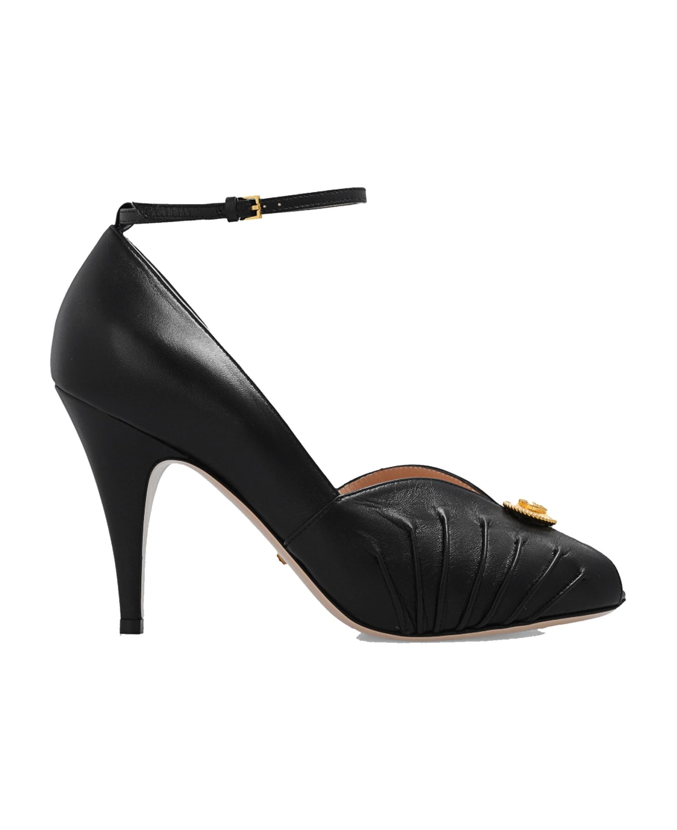 - Composition: 100% Leather - Inner: 100% Leather - Insole: 100% Leather - Sole: 100% Leather - Heel: 10. 0 cm / 25. 4 in - branded insole - Open toe - Gold-colored metal application - 'Interlocking G' logo - Ankle side buckle fastening