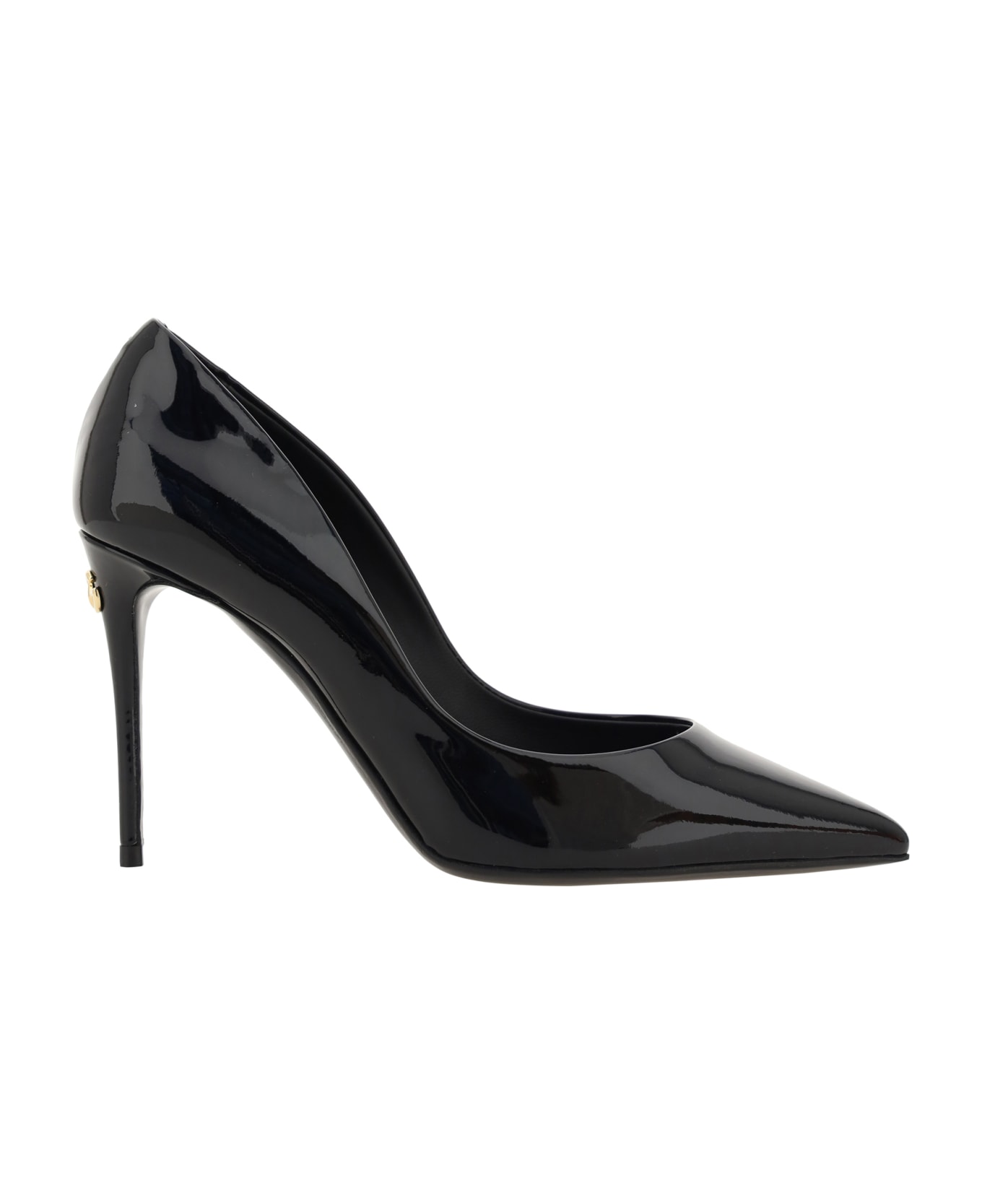 Goatskin pumps by dolce&gabbana, elongated toe, all-over shiny leather effect design, stiletto heel, iconic gold-plated and embossed brand monogram applied on the heel, logoed insole. Composition: 100% % Calf Leather Bos Taurus