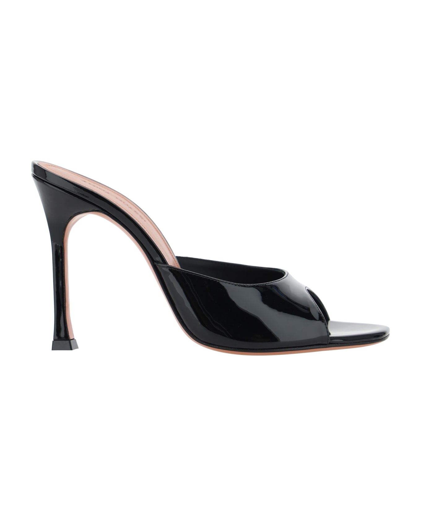 Alexa sandals by amina muaddi, open front square toe, leather stiletto heel, glossy patent leather design, front strap, press-stamped logo insole. Composition: 100% % Calf Leather Bos Taurus, 100% % Domest. Calf Leather *sost Con Calf*