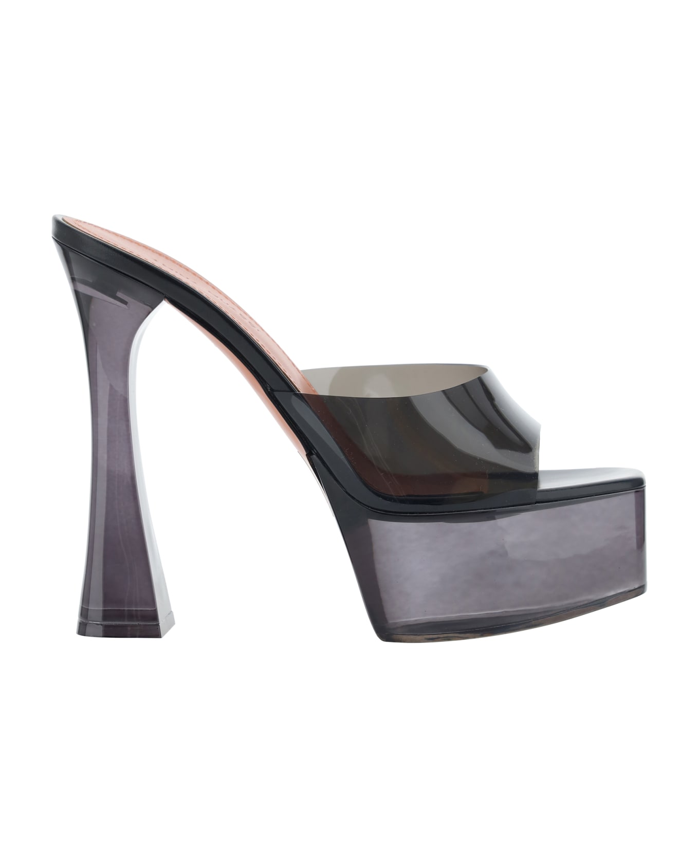 Dalida glass sandals by amina muaddi, square toe on front, semi-transparent geometric heel, front band with transparent design, textured platform sole, logo-embossed insole. Composition: 100% % Pvc