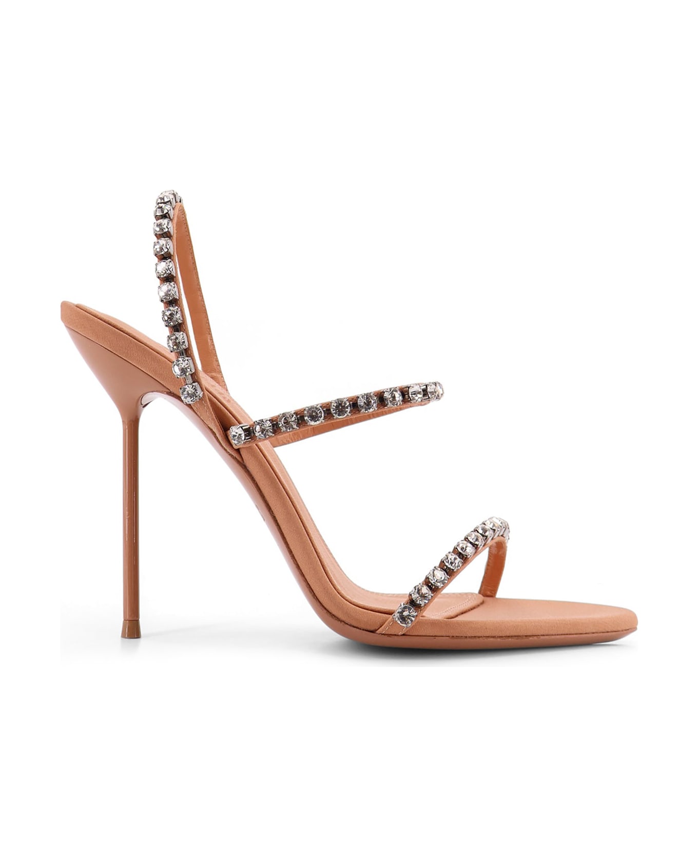 Rounded toe Straps with crystals Stiletto heel Leather sole Made in Italy Satin/Leather Heel height: 10. 5 cm SKU: PX1816XCPCEAMBER