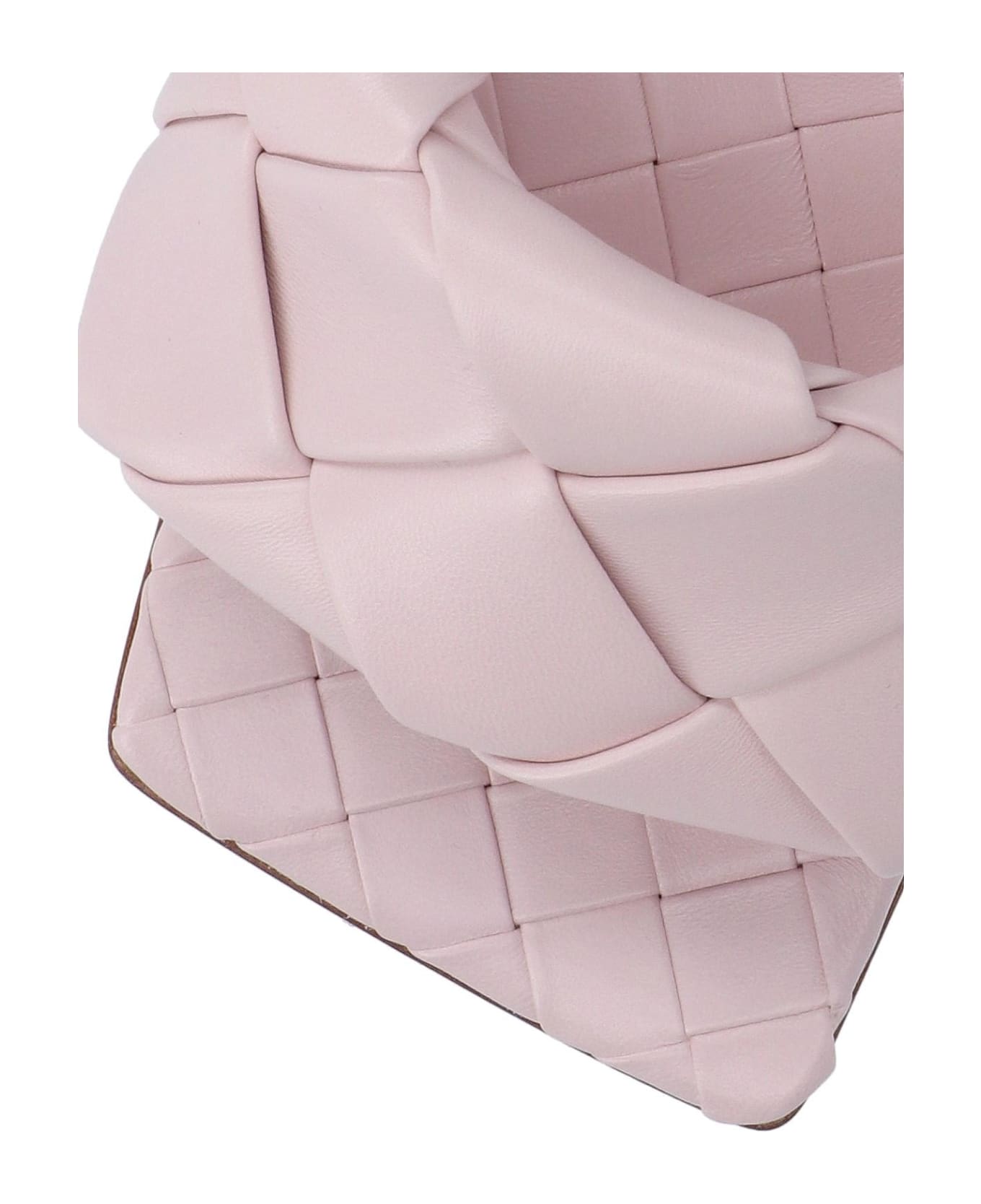 Bottega Veneta 'Lido' Sandals, pink leather, open square toe, quilted upper, stiletto heel, leather sole with rubber appliqué.