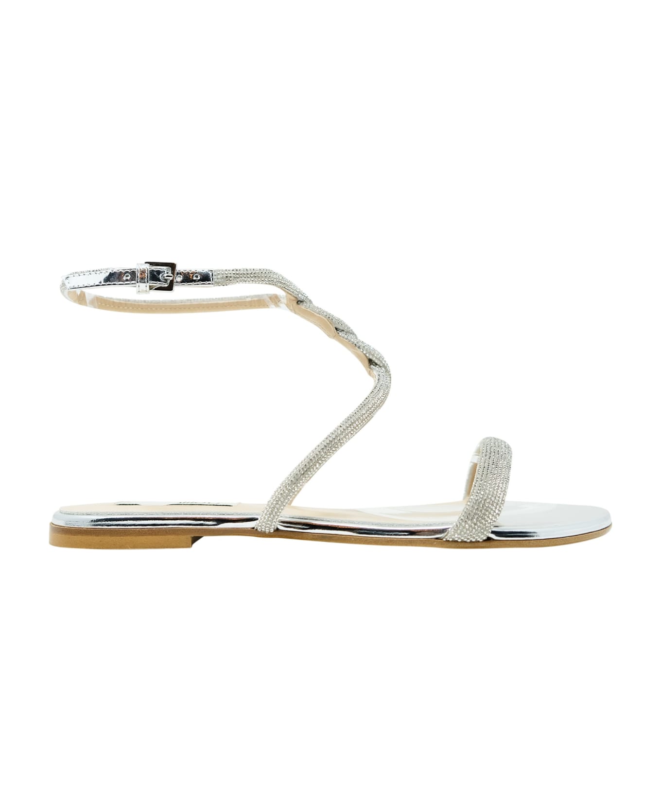 NINALILOU 321105E1 SILVER LEATHER FLAT SANDALS, product code 321105E1, color SILVER, material LEATHER, season SS22