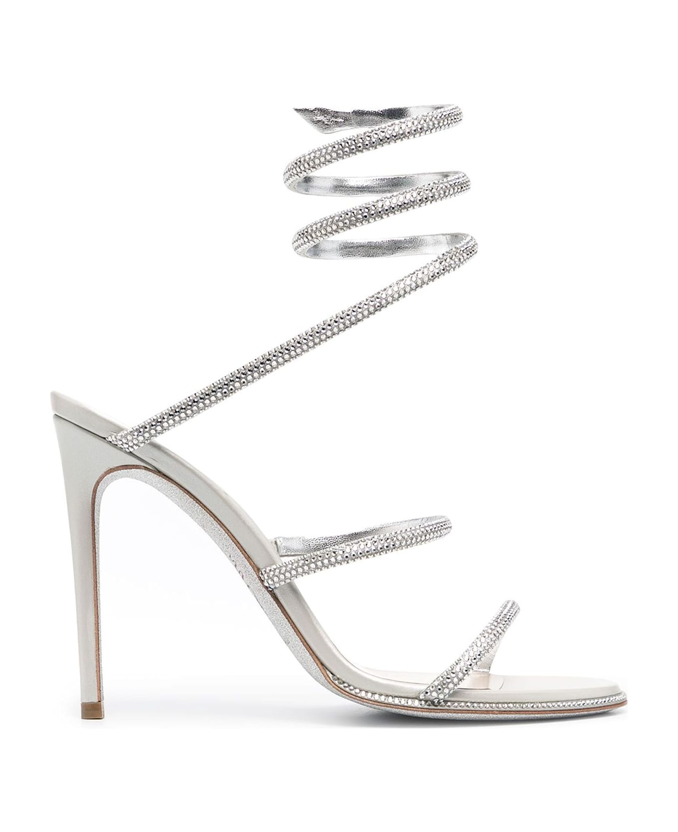 Silver-tone Cleo calf leather sandals, rhinestone, strap detailing, open toe, 11 high heel Composition: Leather, 100%