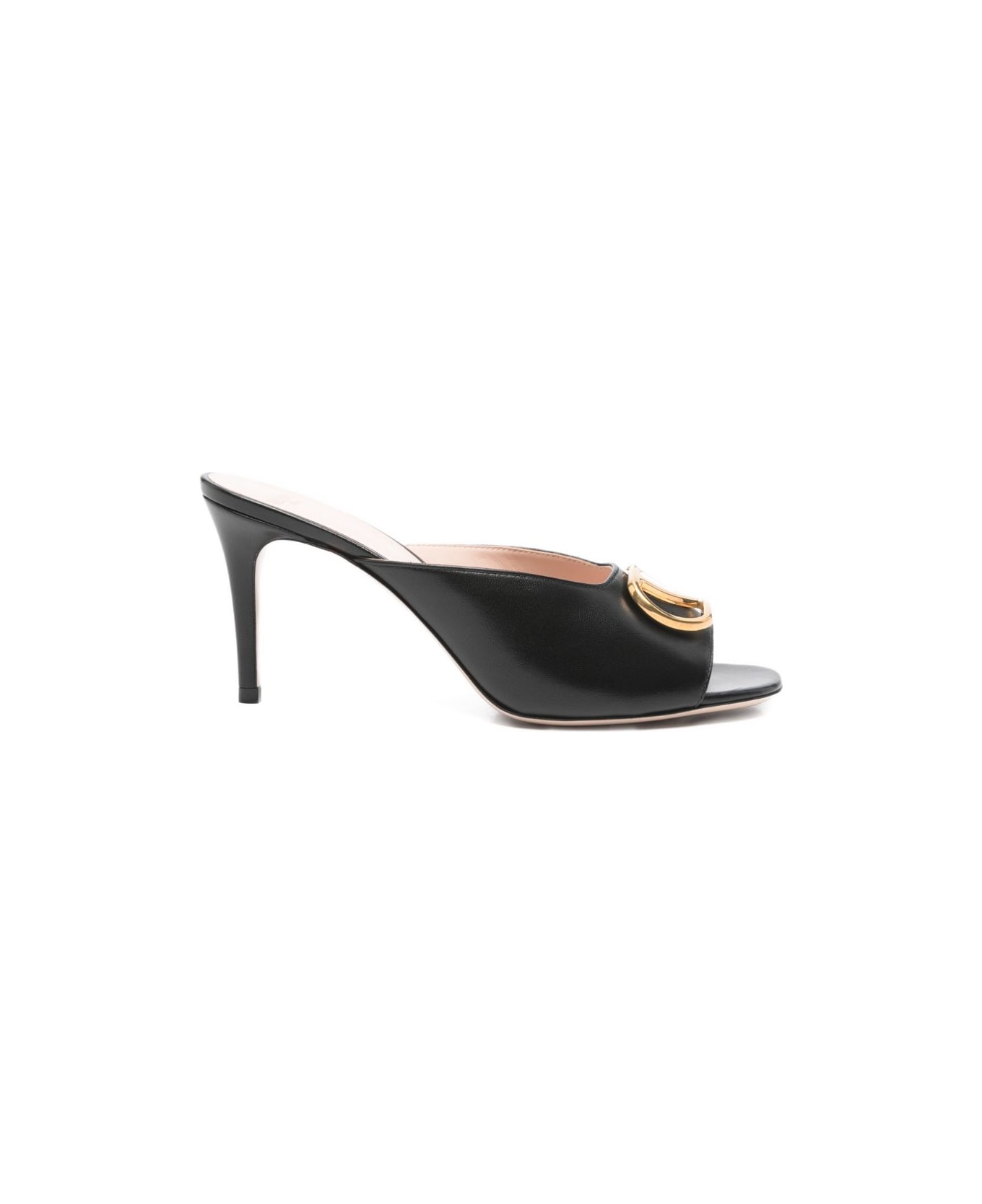 black gold-tone hardware open toe stiletto heel Composition: Calf Leather, 100%