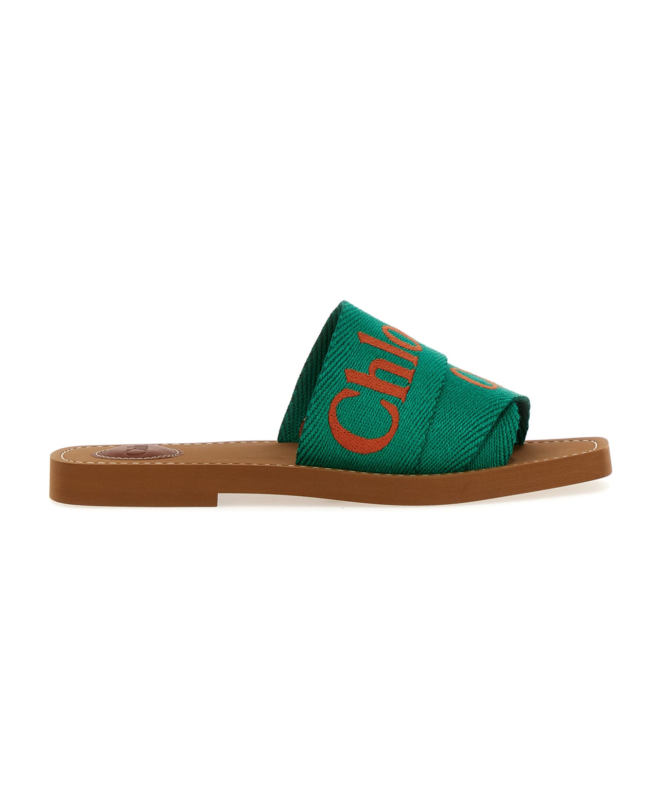 'Woody' canvas sandals with logo print and a cow sole. Composition: