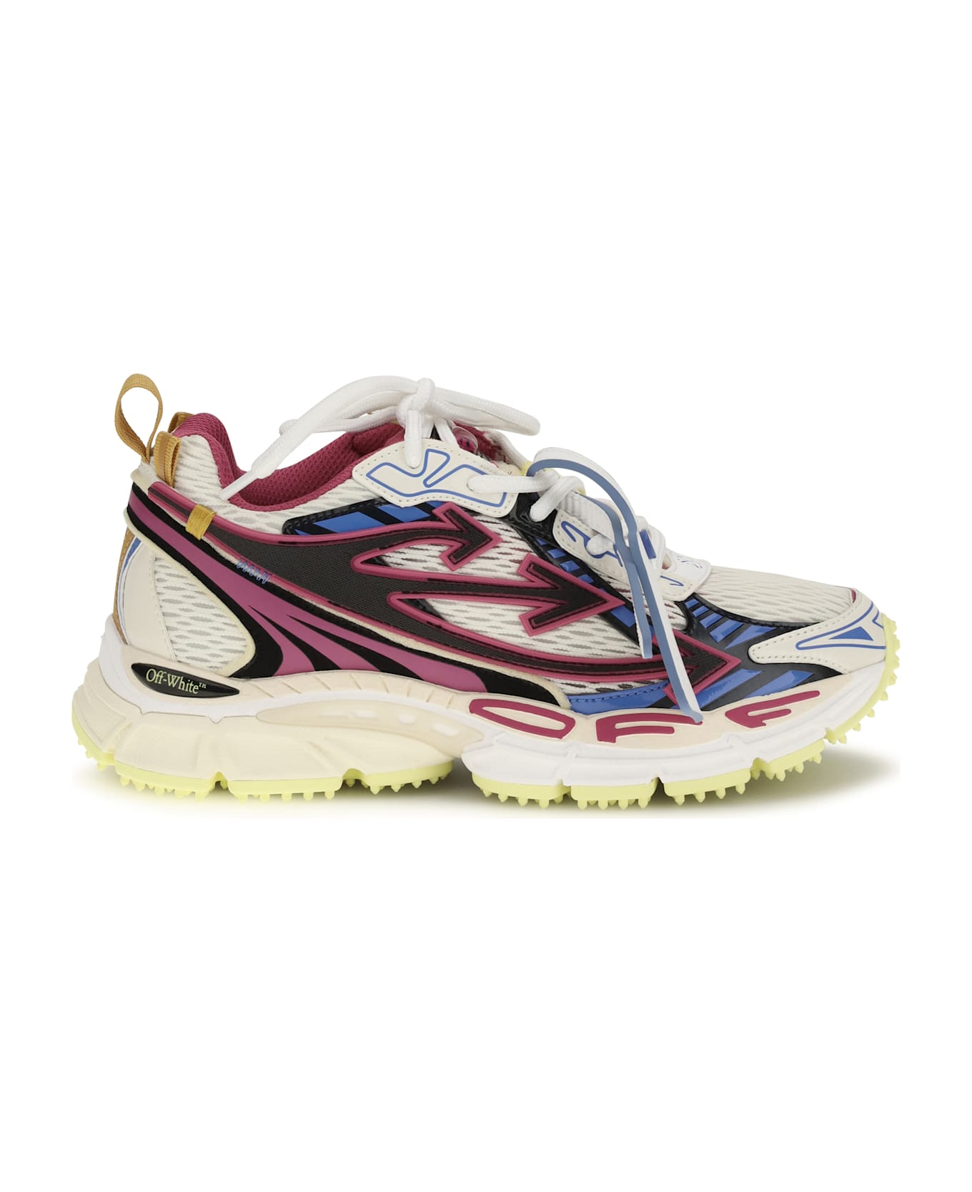 The be right back sneakers by off-white combine contemporary aesthetics with the brand s iconic details. featuring the arrow logo also in a raised version they boast a dynamic design enhanced by a metallic finish and a textured logo that adds depth. the label with removable straps completes the look, adding a distinctive and recognizable touch that s perfect for an urban, on-trend style.