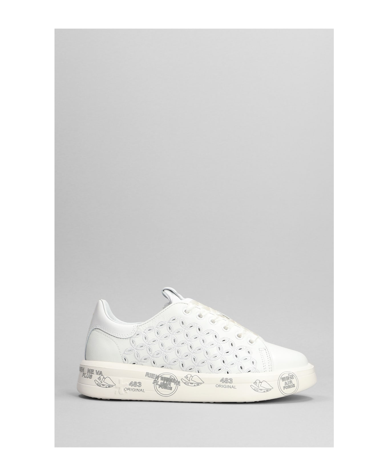 Belle Sneakers in white leather, laces, logo print sole, logo on heel, perfored side, 100% leather, Made in Vietnam