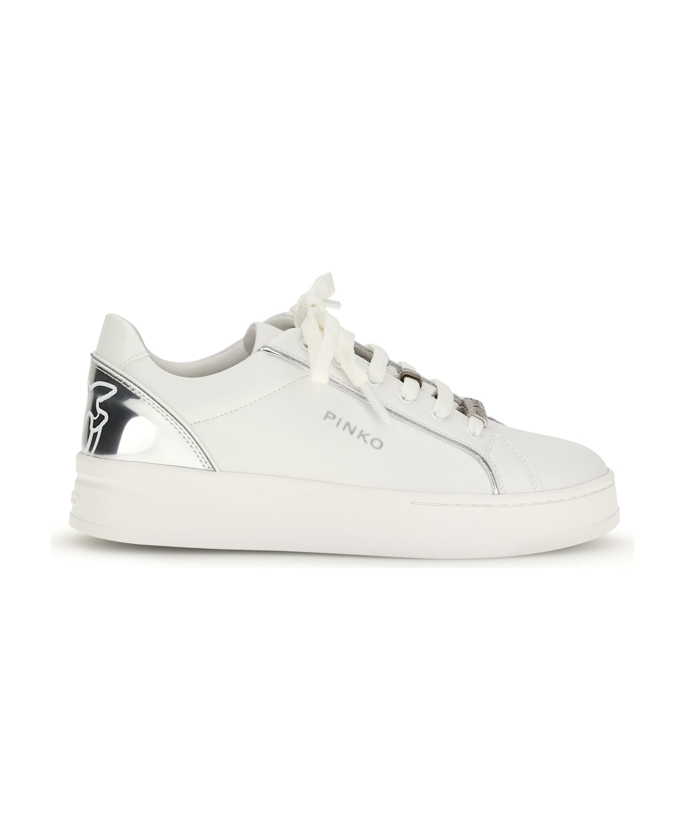 The iris sneakers by pinko stand out for their clean white design enhanced by metallic details. the lace-up closure, rounded toe and silver-colored hardware elements complete the model, making it modern and versatile.