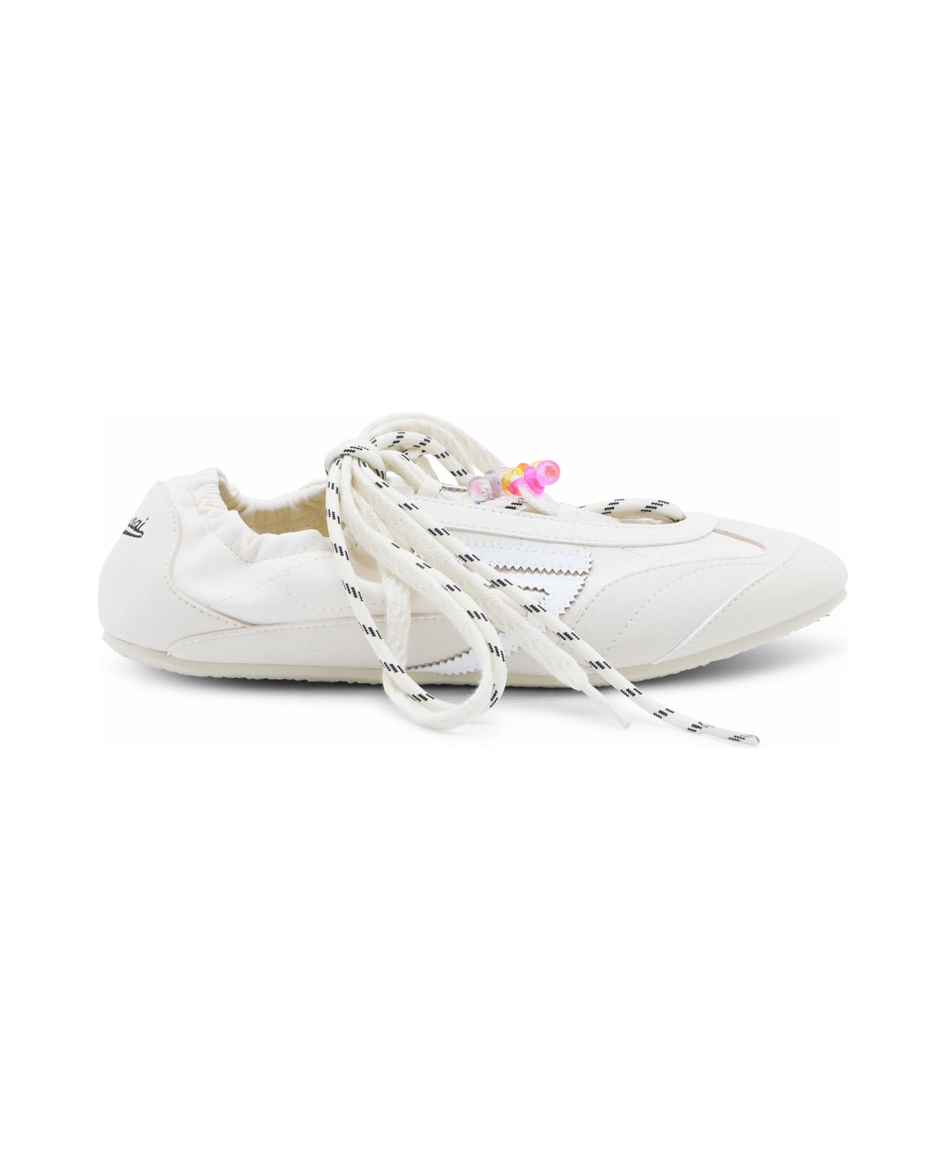 Lunar silk flats from Puraai featuring round toe, rubber sole, logo inserts, trekking multiple laces and jewels detail at front.