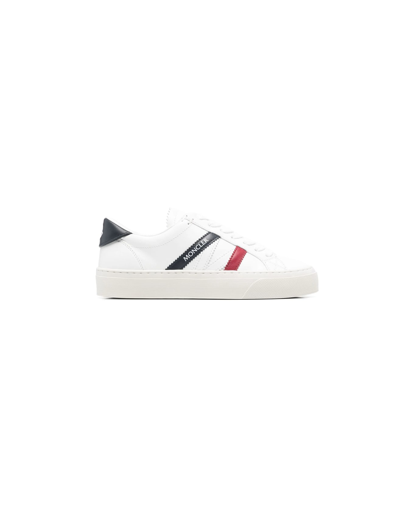 white/multicolour calf leather stripe detailing logo-debossed tongue logo print to the side contrasting branded heel counter front lace-up fastening round toe branded leather insole vulcanised-rubber sole