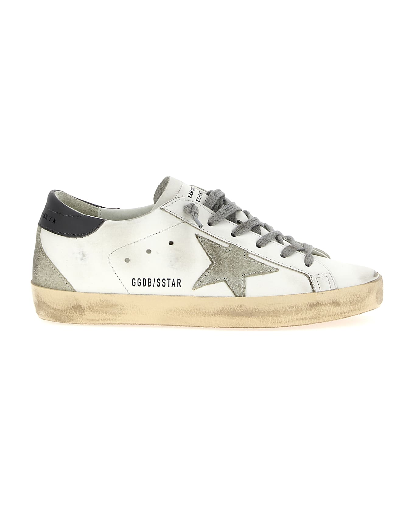 'Superstar' leather sneakers with contrast suede star and heel, used-effect details, lace-up closure, rubber sole, logo. Composition: 100% cow leather (Bos Taurus)