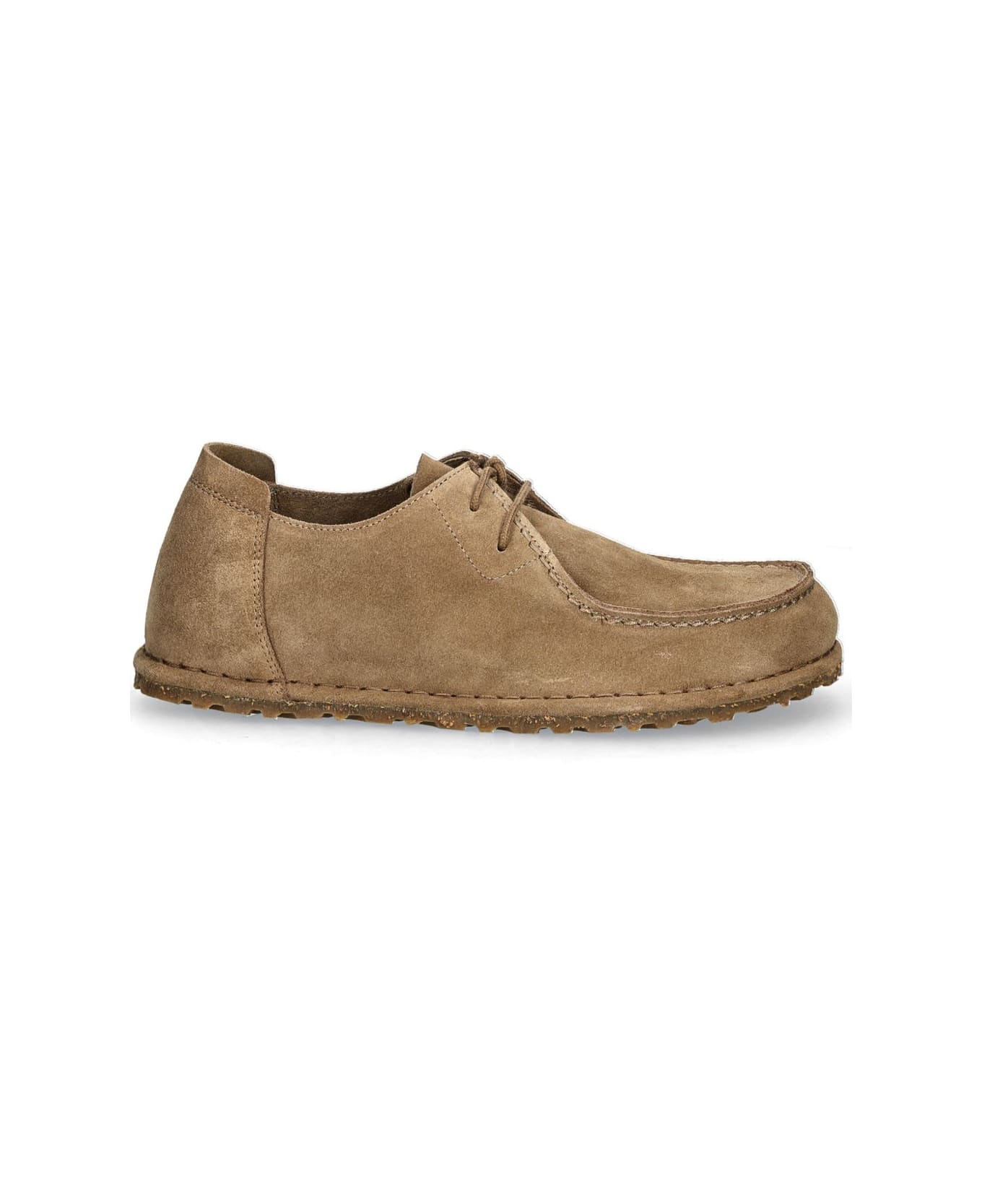 taupe suede front lace-up fastening debossed logo to the side round toe rubber sole