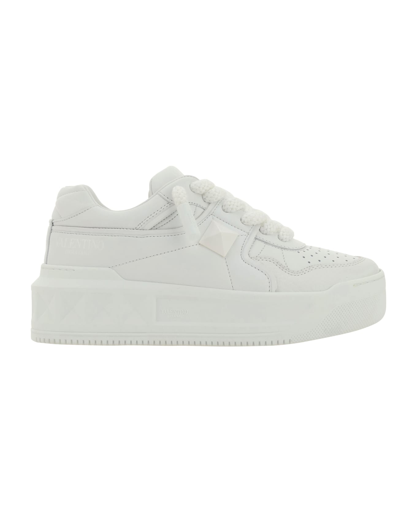 Calfskin one stud xl sneakers by valentino garavani, round toe, a flat sole, a lace-up front fastening, a brand embossed signature on the front tongue, an iconic brand embossed stud on the side panel, a contrasting textured sole with a studded design. Composition: 100% % Calf Leather Bos Taurus, 100% % Rubber