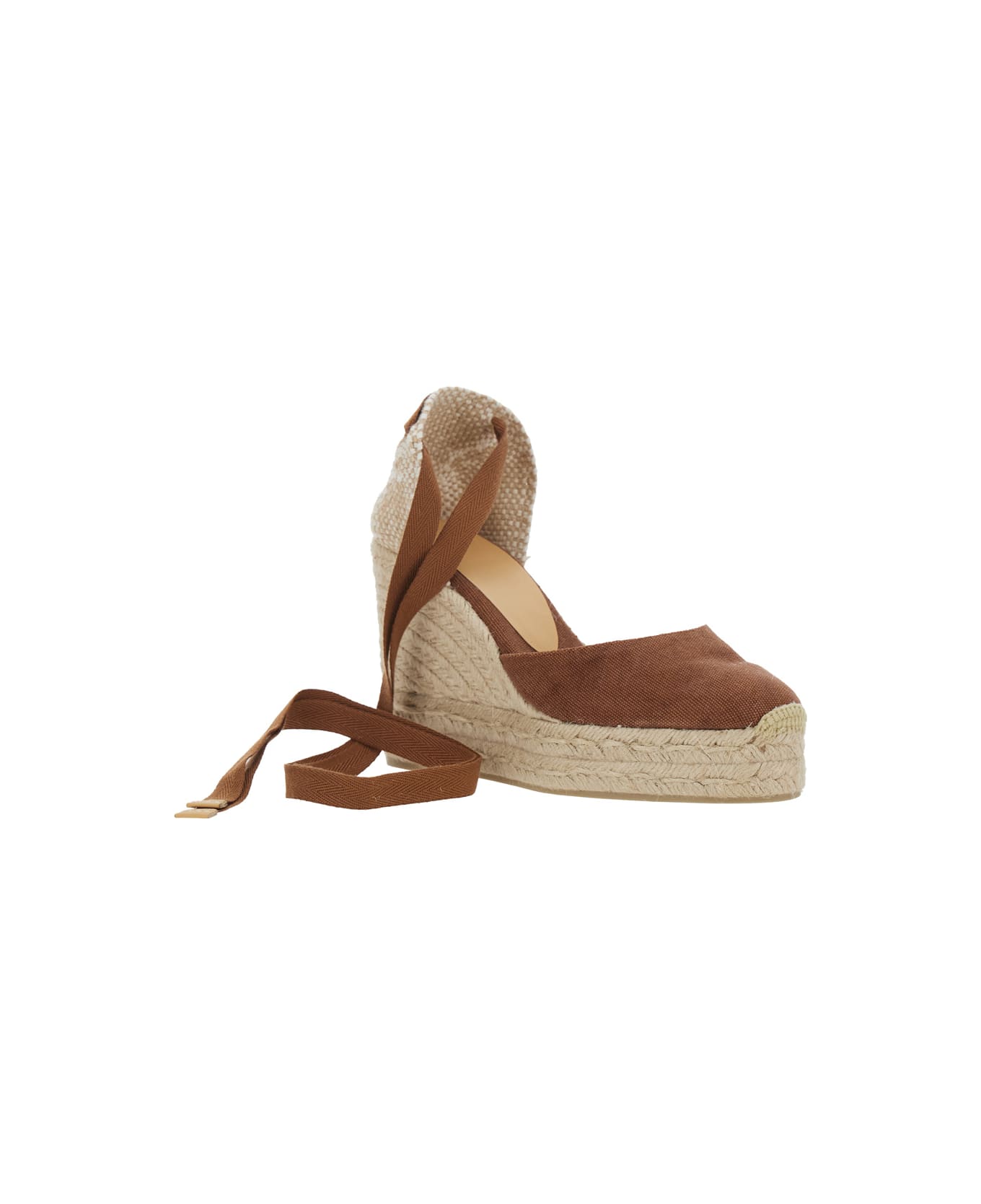 'carina' Brown Wedges With High Wedge Heel And Ankle Strap Closure In Fabric Woman