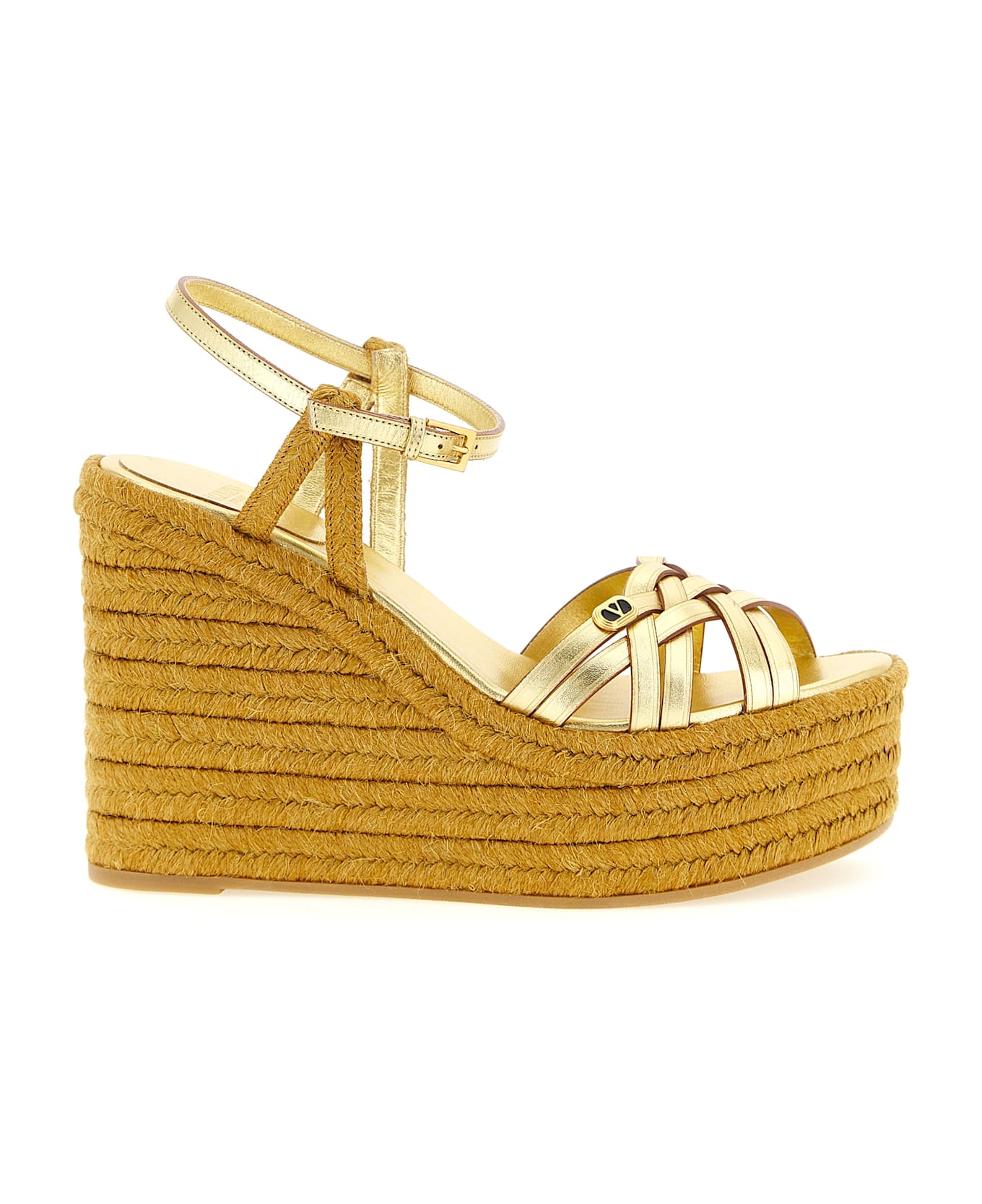 'Bribri' laminated calf leather espadrilles, front braided straps with side enameled metal VLogo Signature, adjustable ankle strap, rope wedge, rubber sole. Composition: 100% calfskin leather (Bos Taurus)
