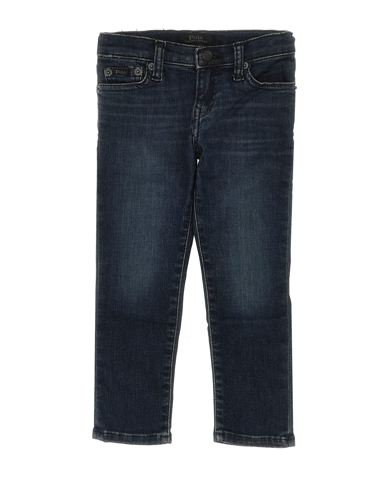 'The Eldridge Skinny' stretch cotton denim jeans with zip and button closure, five pockets.