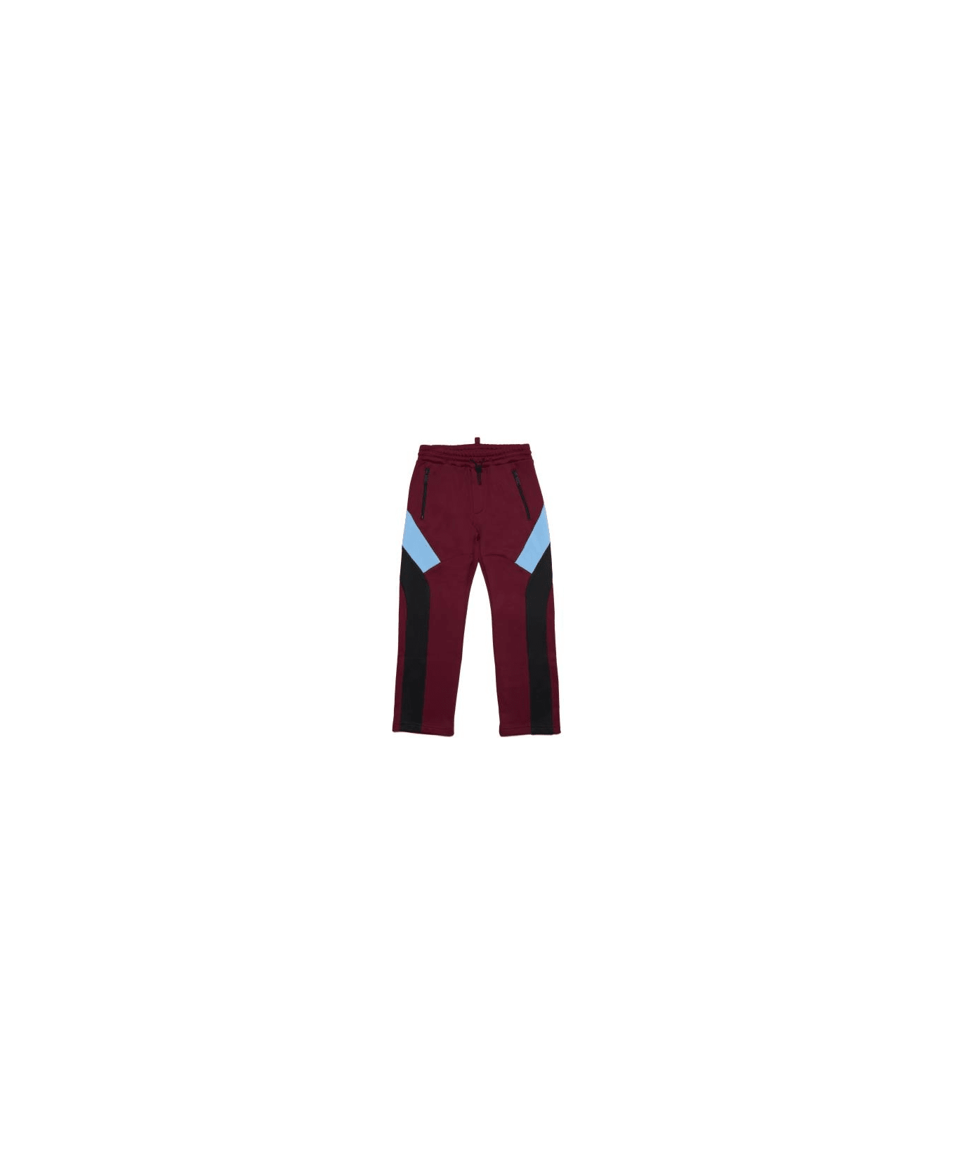 Burgundy, light blue, black, color-block design, rear logo application, elasticated waist, drawstring closure, front zip pockets, straight cut and straight hem. Composition Nylon 55%, Cotton 45%
