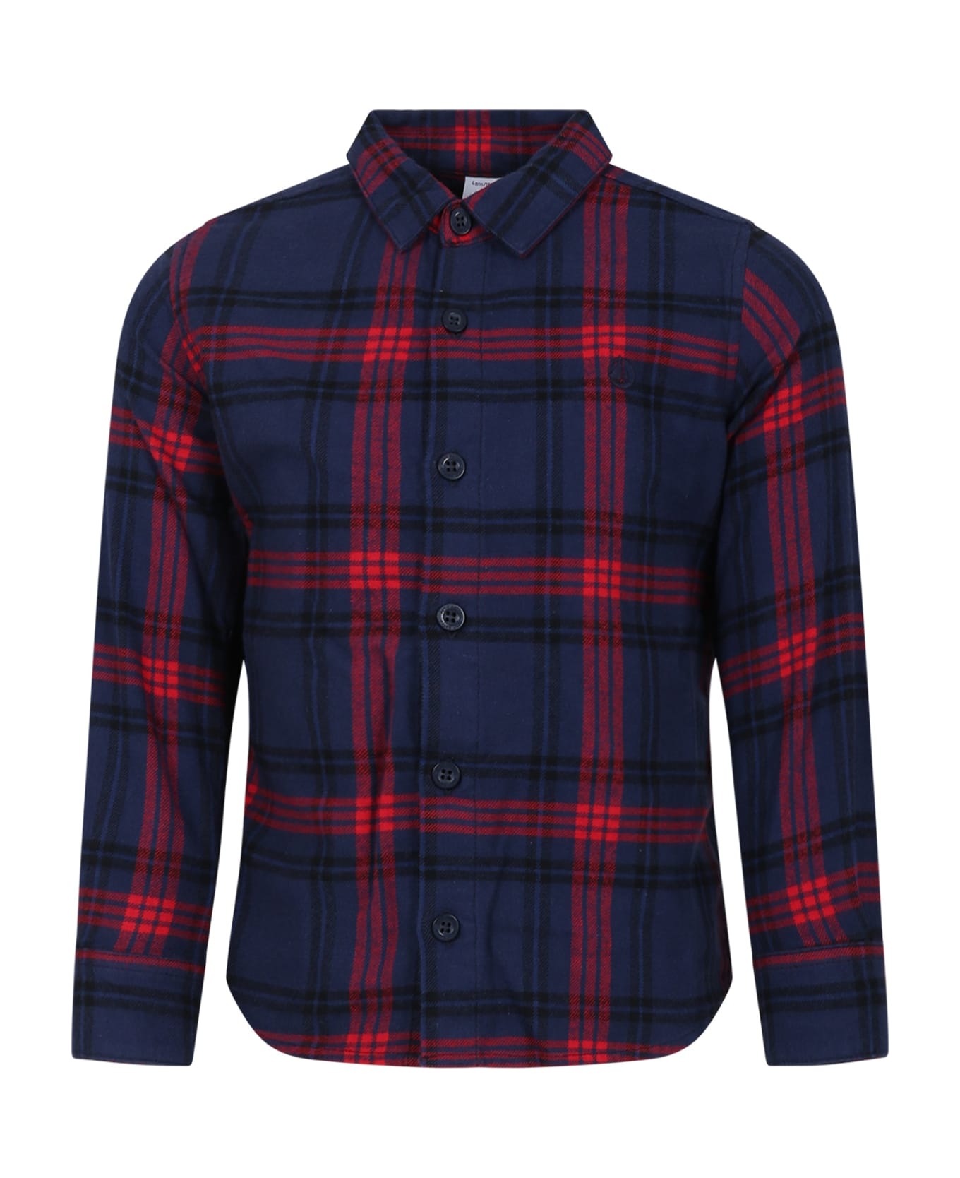 Blue checked shirt, in cotton flannel, with long sleeves, with collar, front closure with buttons. It is embellished with logo embroidered on the chest.