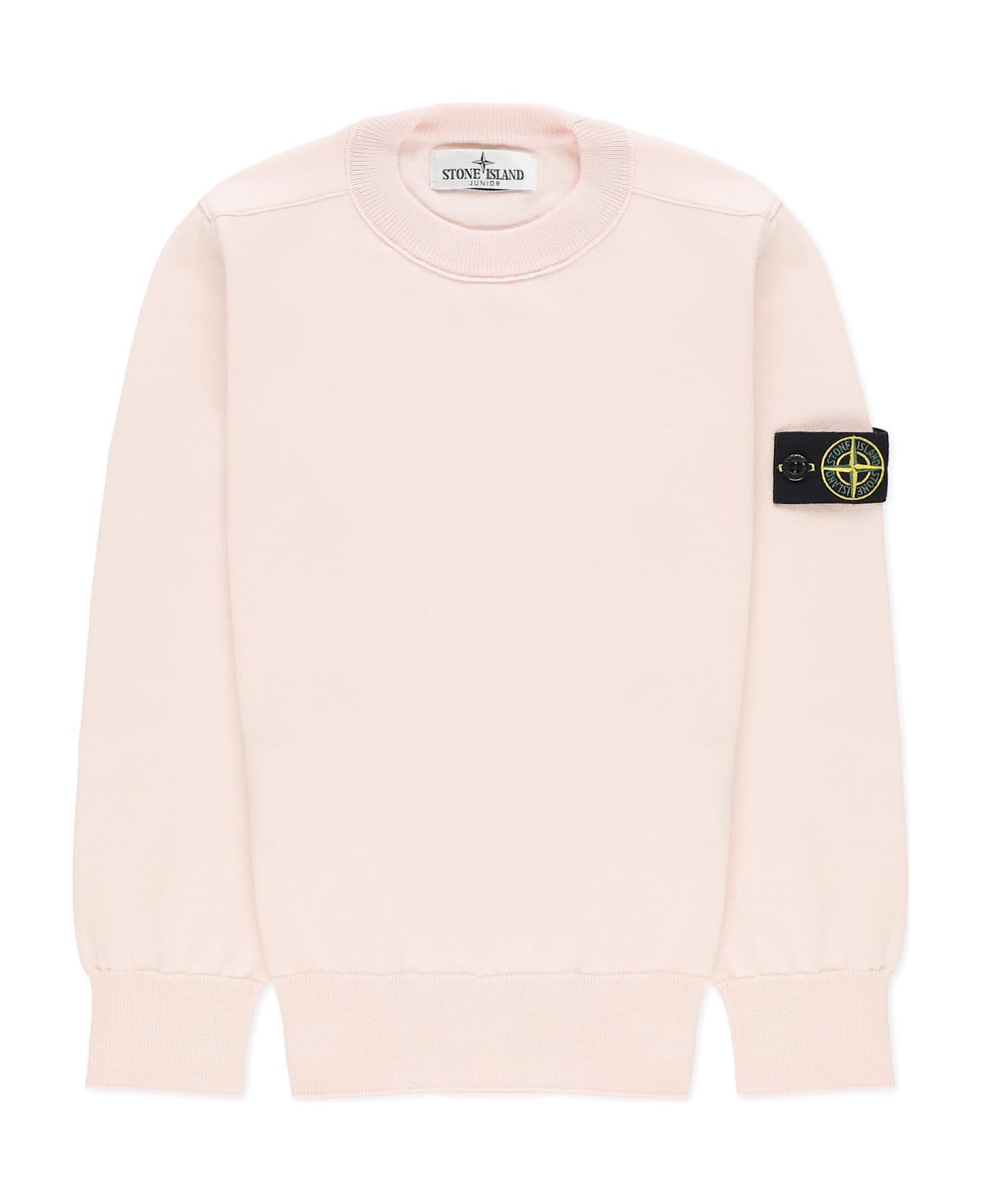 - Pink Stone Island Junior cotton sweater for boy - Crew neckline - Long sleeves - Contrasting color logoed patch at left sleeve Composition: 100% Cotton