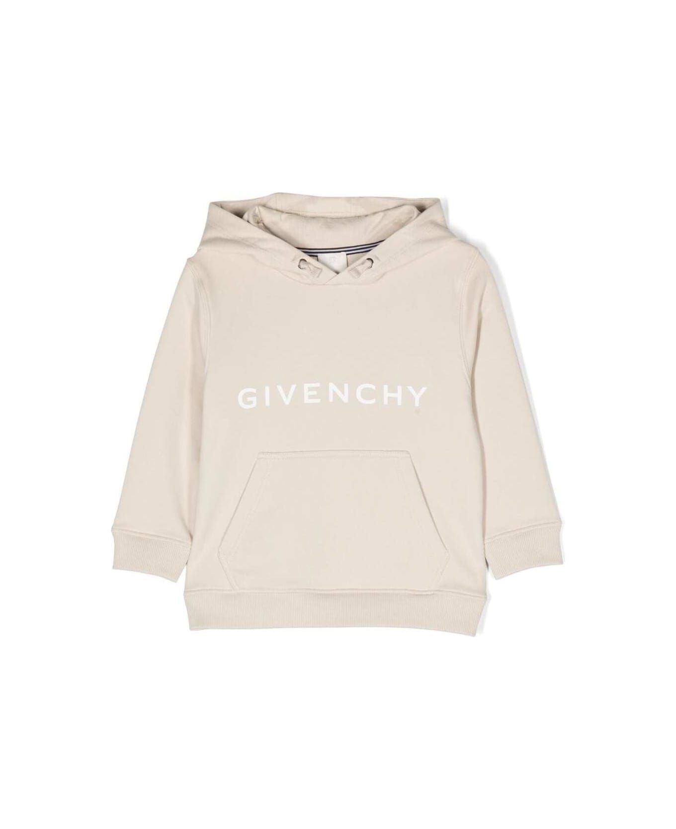 Beige Hooded Sweatshirt With Printed Logo In Cotton Blend Boy