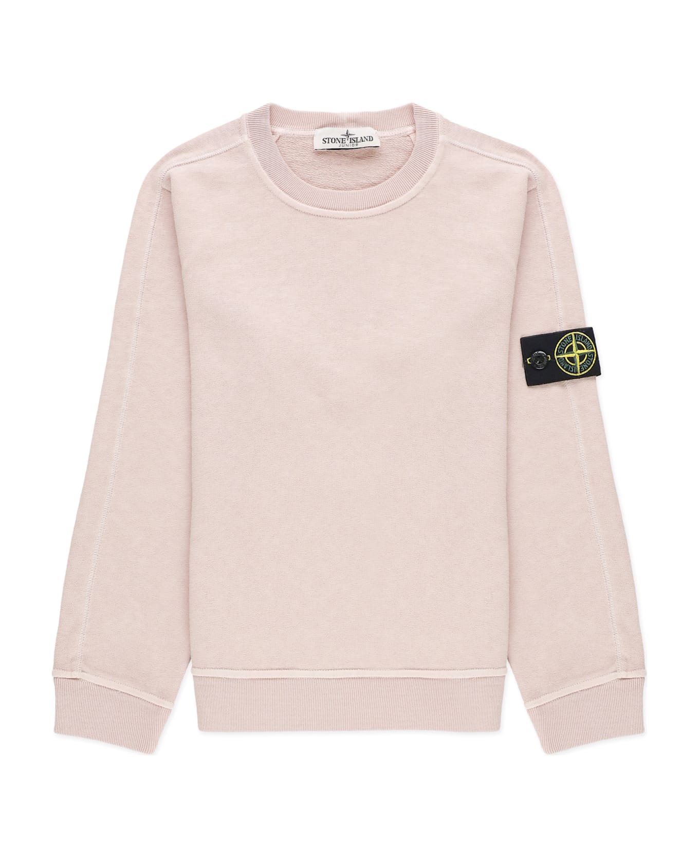 - Pink Stone Island Junior cotton sweatshirt for boy - Crew neckline - Long sleeves - Contrasting color logoed patch at left sleeve