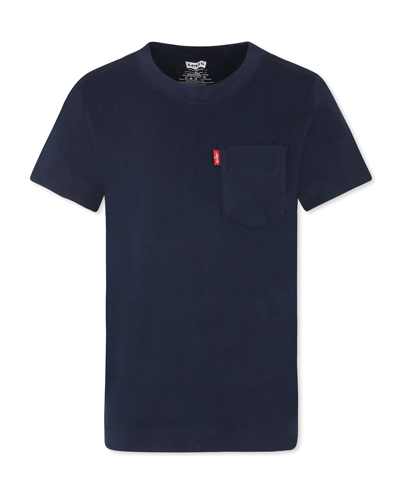 Blue cotton blend t-shirt, short sleeves, with ribbed crew neck and chest pocket. It is embellished with a logoed patch on the front.