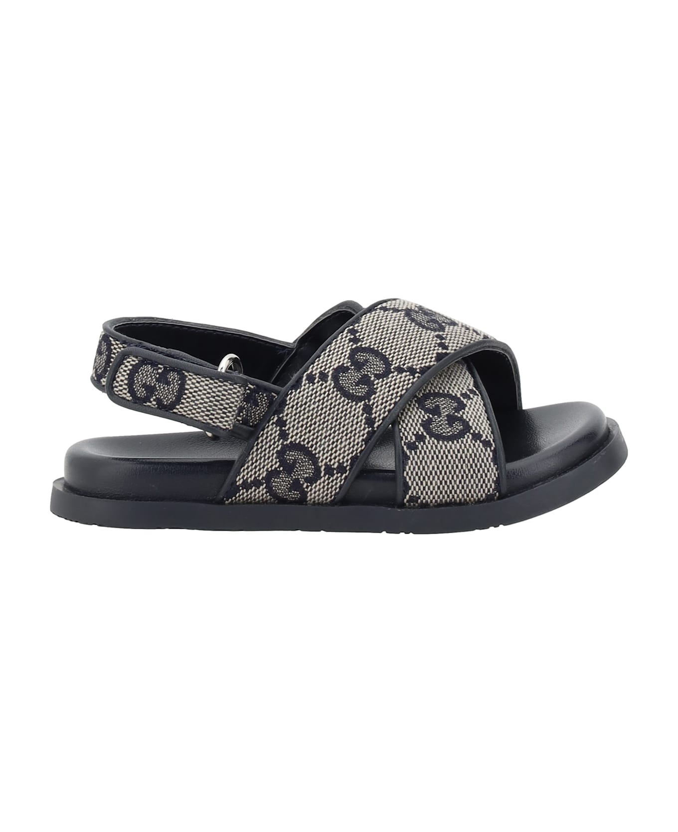 Gucci's gg pattern sandals for kids are the perfect blend of style and comfort. with a rubber sole for a secure and stable walk, they feature an adjustable strap closure at the back for a customizable fit. the design is enhanced by the iconic gg pattern, the brand's symbol of elegance and recognition. a great choice for little ones in style.