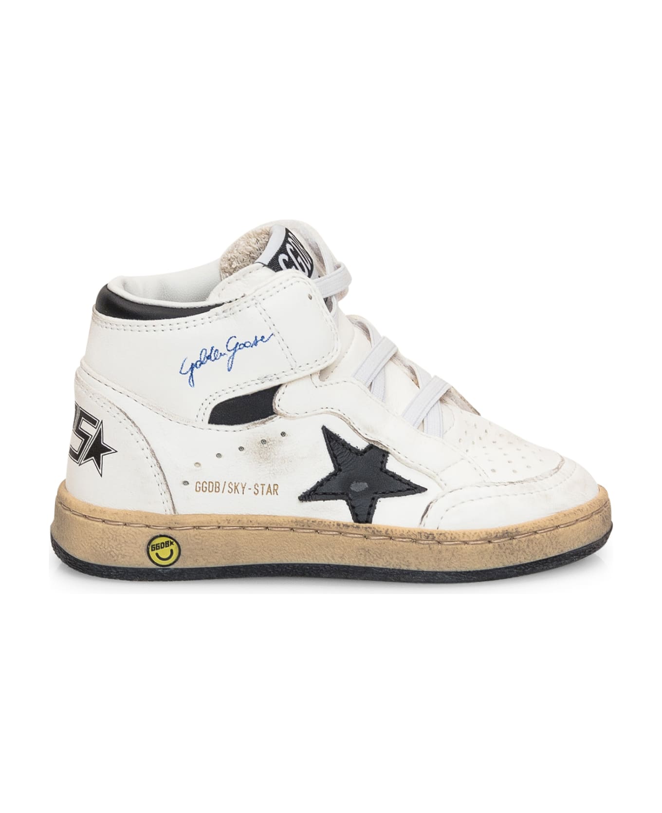Low high sneaker. Slip-on with frontal elastic. Closure with lateral tears. Star patch on the side. Lettering on the heel.