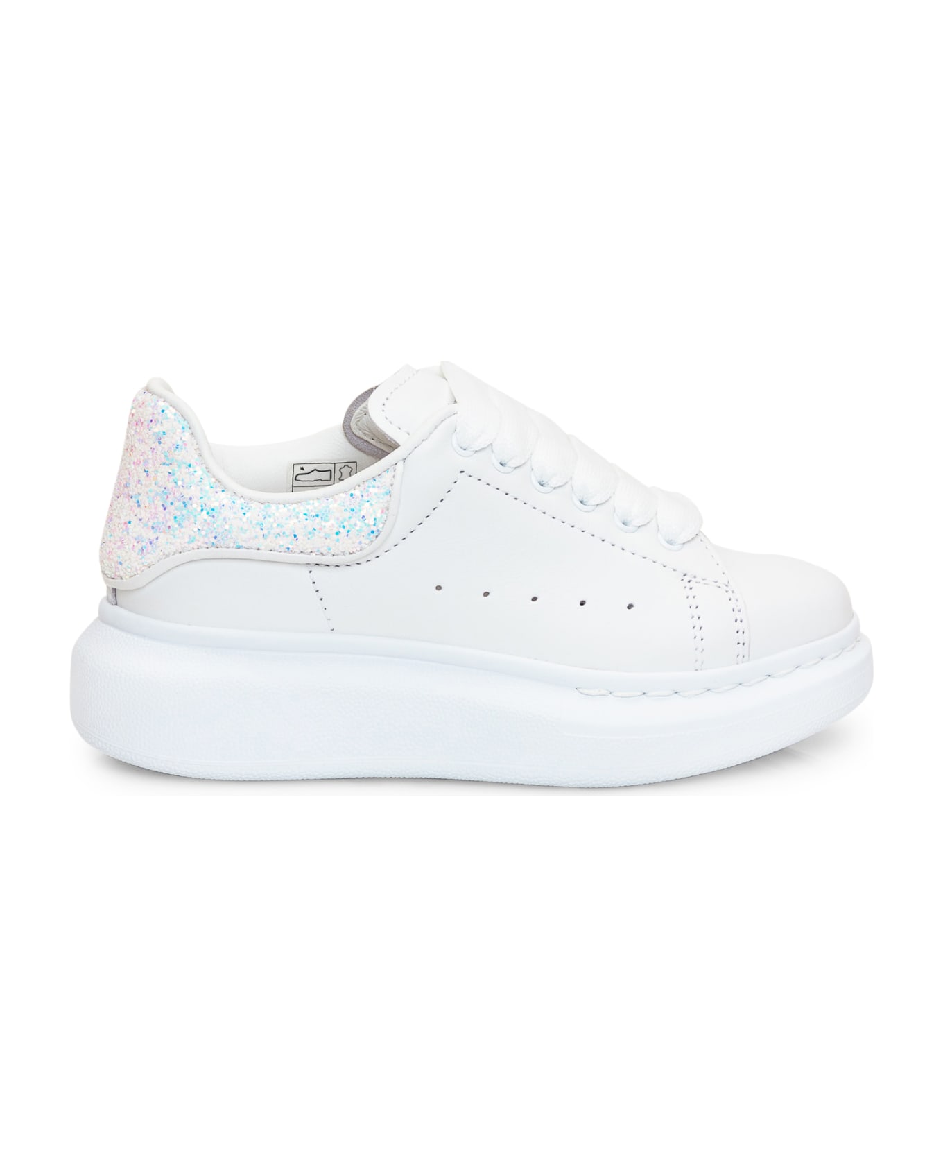 Low white sneaker. Lace-up closure. Contrasting heel with glitter. Composition: Outside:, 100% Leatherlining:, 100% Leathersole:, 100% Rubber
