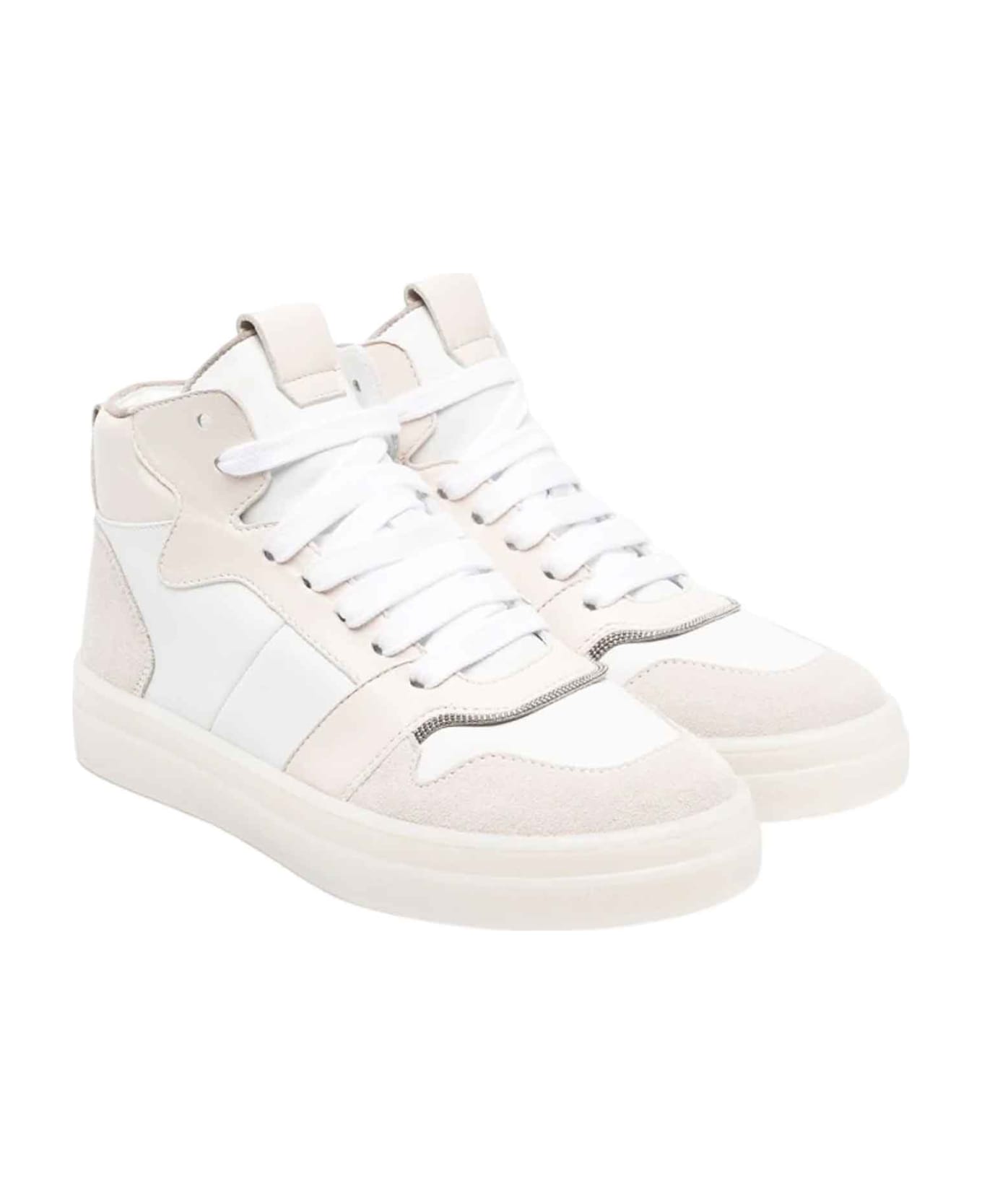 White sneakers boy. Ankle height, round toe, lace-up front closure and flat rubber sole. leather 100%