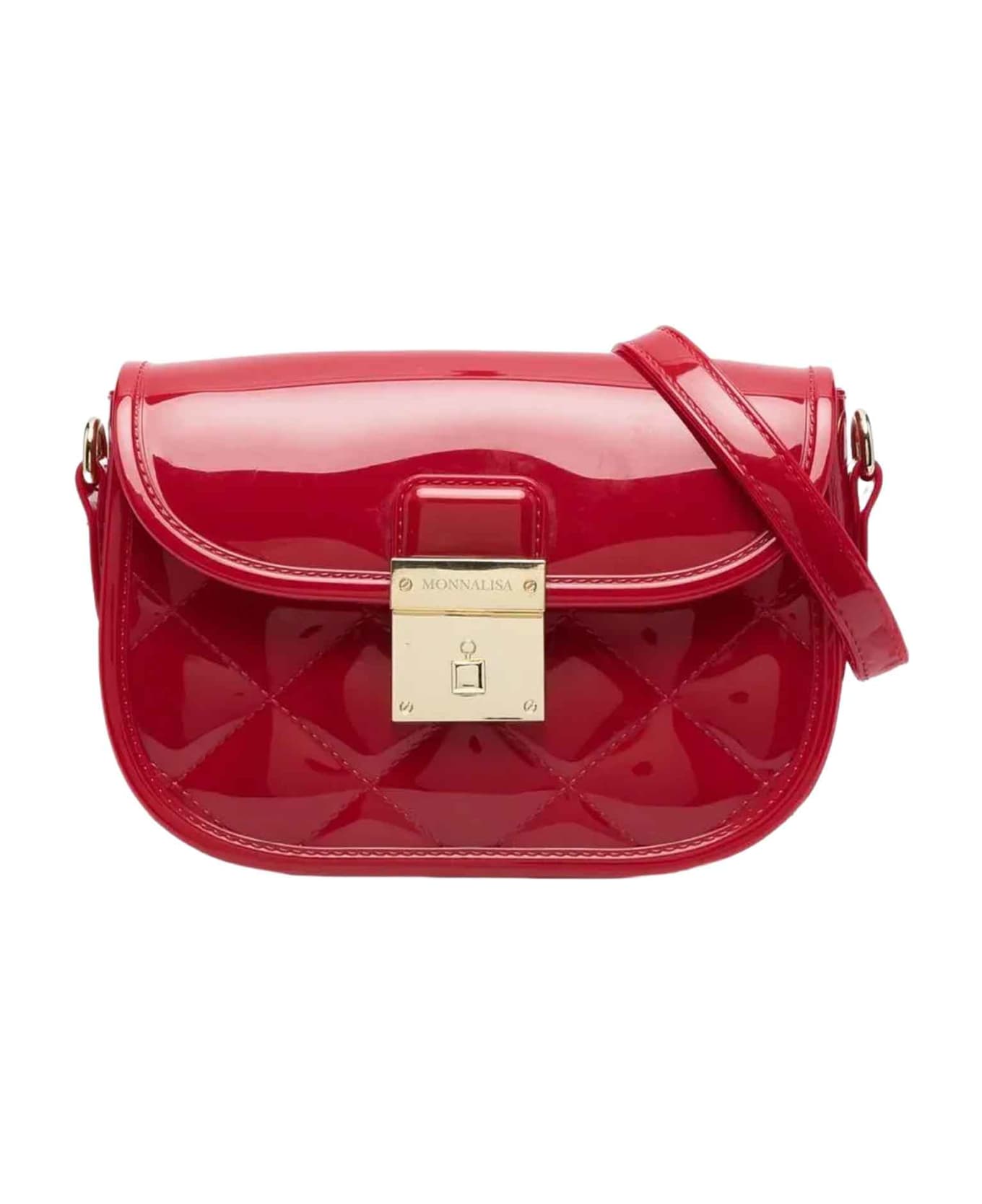 Red bag girl. Diamond quilting design, gold-tone details, engraved logo, front clasp closure, removable shoulder strap and main compartment. PVC 100%