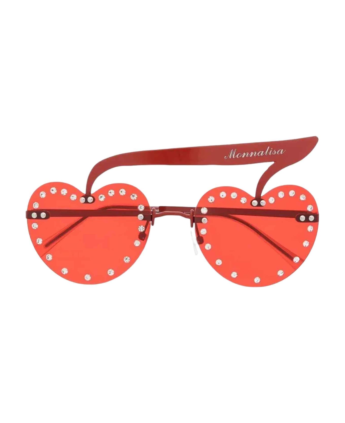red glasses girl. Crystal decoration, temples with curved tips and red lenses. Polycarbonate 100%, Metal 100%