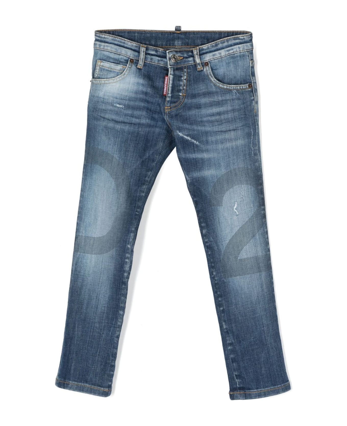 blue cotton jeans stretch-cotton distressed effect bleached effect belt loops logo patch to the rear logo print to the front mid-rise straight leg front button and zip fastening classic five pockets