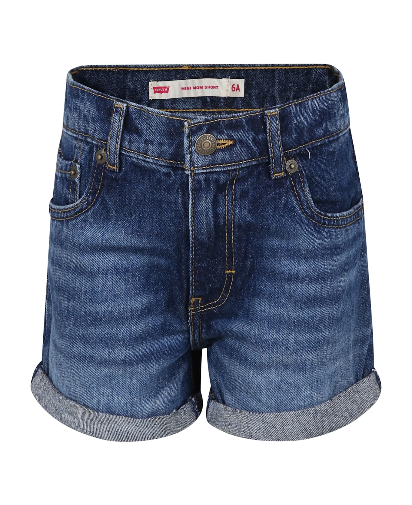 Blue denim shorts in organic cotton, five pockets, with front zip and button closure and adjustable waist thanks to internal elastic bands. They are embellished with a logo patch on the back.