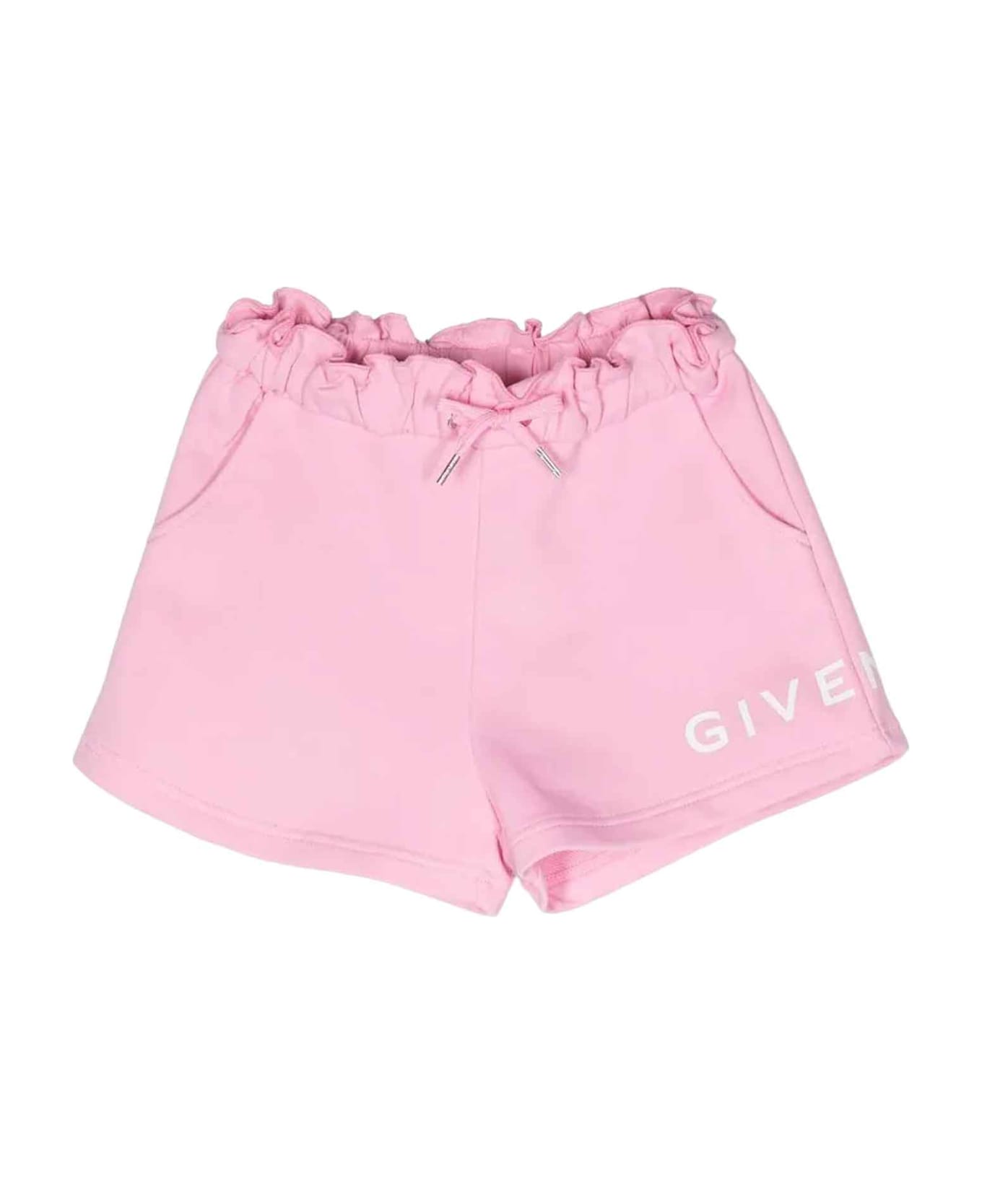 pink shorts girl. Logo print on leg, signature 4G pattern, paperbag waist, elasticated drawstring waist and two side diagonal pockets. Cotton 86%, Polyester 14%