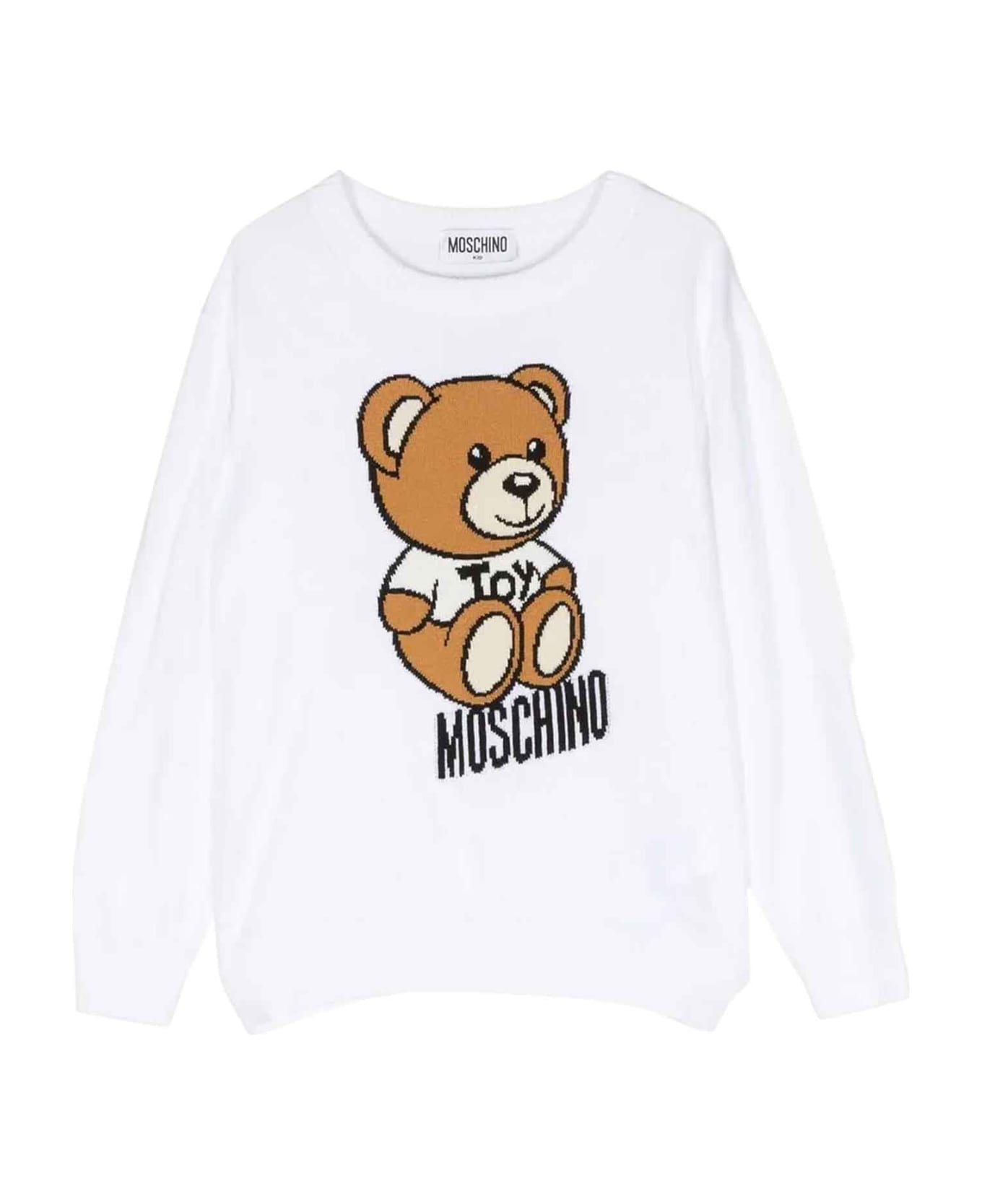 white sweater unisex. Knitted design, signature teddy bear motif, ribbed trim, crew neck, long sleeves and straight hem. 100% Cotton
