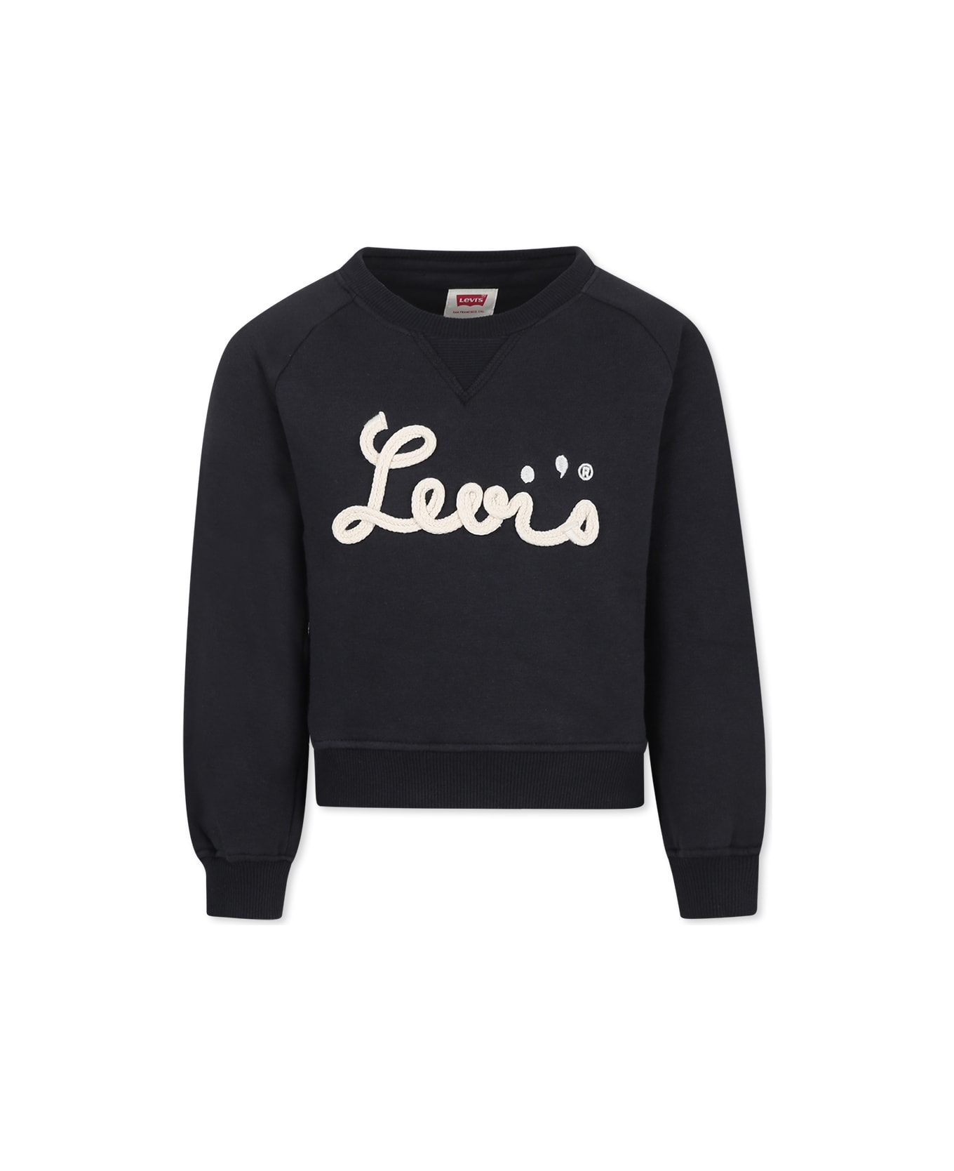 Black sweatshirt in cotton blend fleece, long sleeves, with crew neck, cuffs and hem ribbed. It is embellished with woven logo on the front.