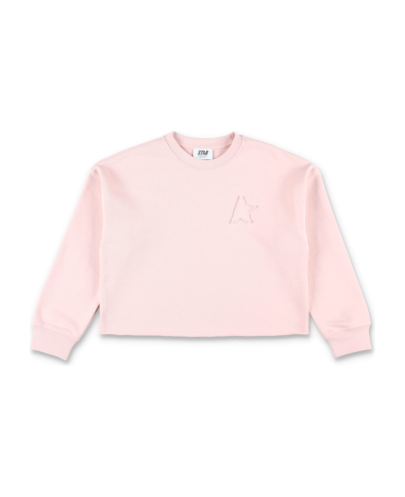 This Golden Goose Kids Sweatshirt Stands Out For Its Clean Aesthetic And Contemporary Cropped Silhouette. Crafted From Soft Cotton Fleece In A Delicate Pale Pink Shade, It Features A Classic Crew Neck And Long Sleeves With Ribbed Cuffs. The Design Is Completed By The Iconic Tonal Star Patch Applied On The Chest, A Subtle Yet Recognizable Signature Of The Brand. Cropped Silhouette Crew Neck Long Sleeves With Ribbed Cuffs Tonal Star Patch On The Chest Raw Hem