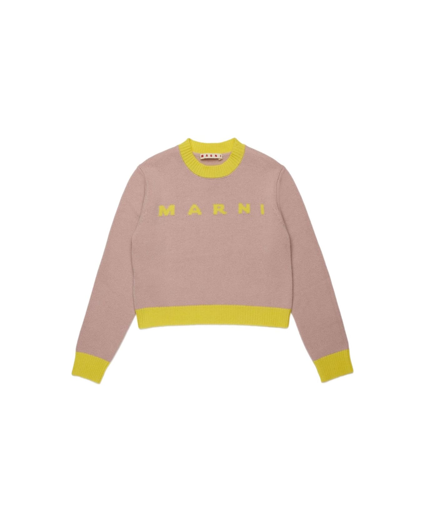 Marni Kids Pink crewneck, long-sleeved sweater with logo Composition: 70% Wool, 30% Cashmere