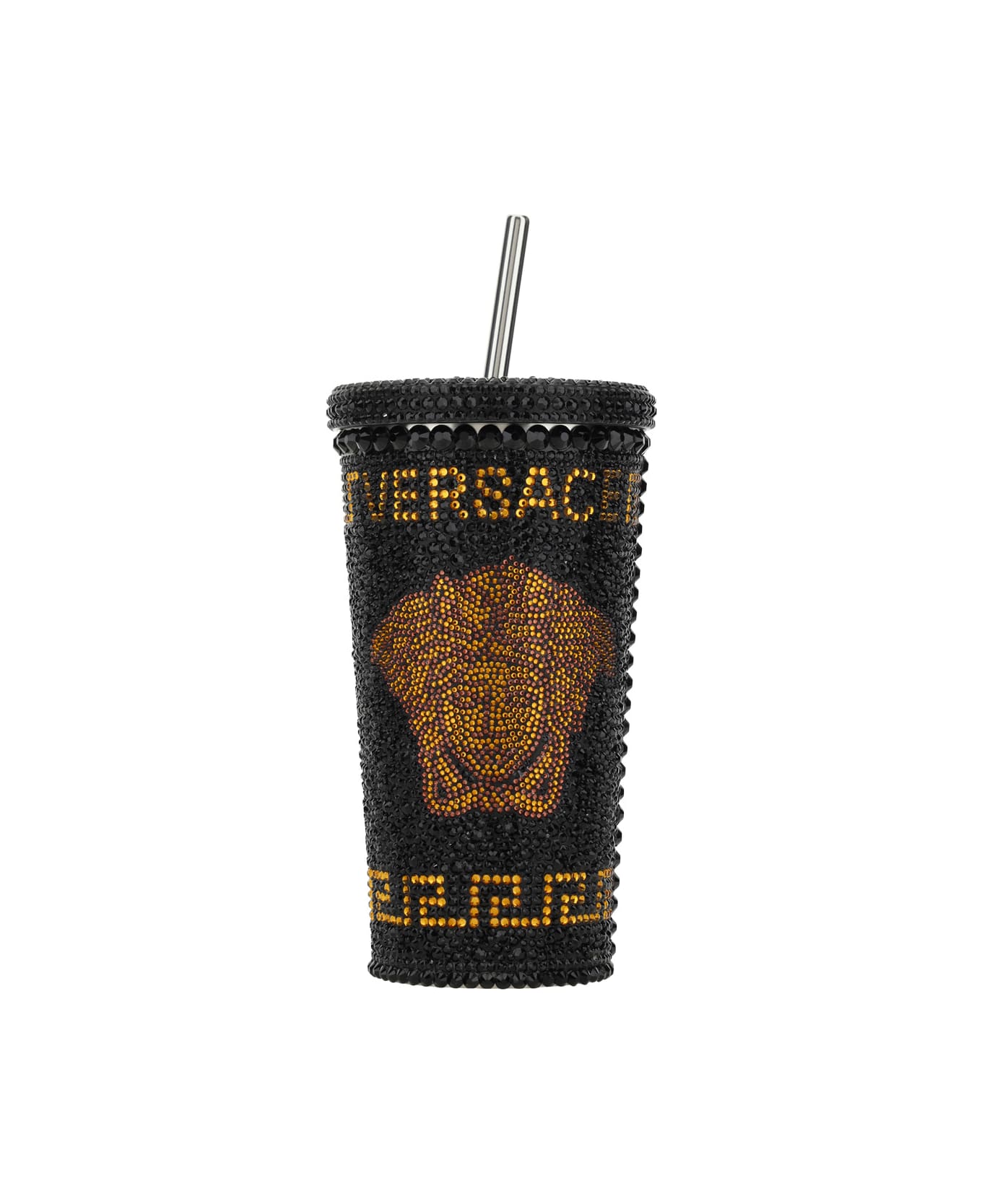 Travel mug by gianni versace, entirely covered in rhinestones and jewelry, iconic medusa head and brand's greek applied in all-over contrast. Composition: 100% % Polyester