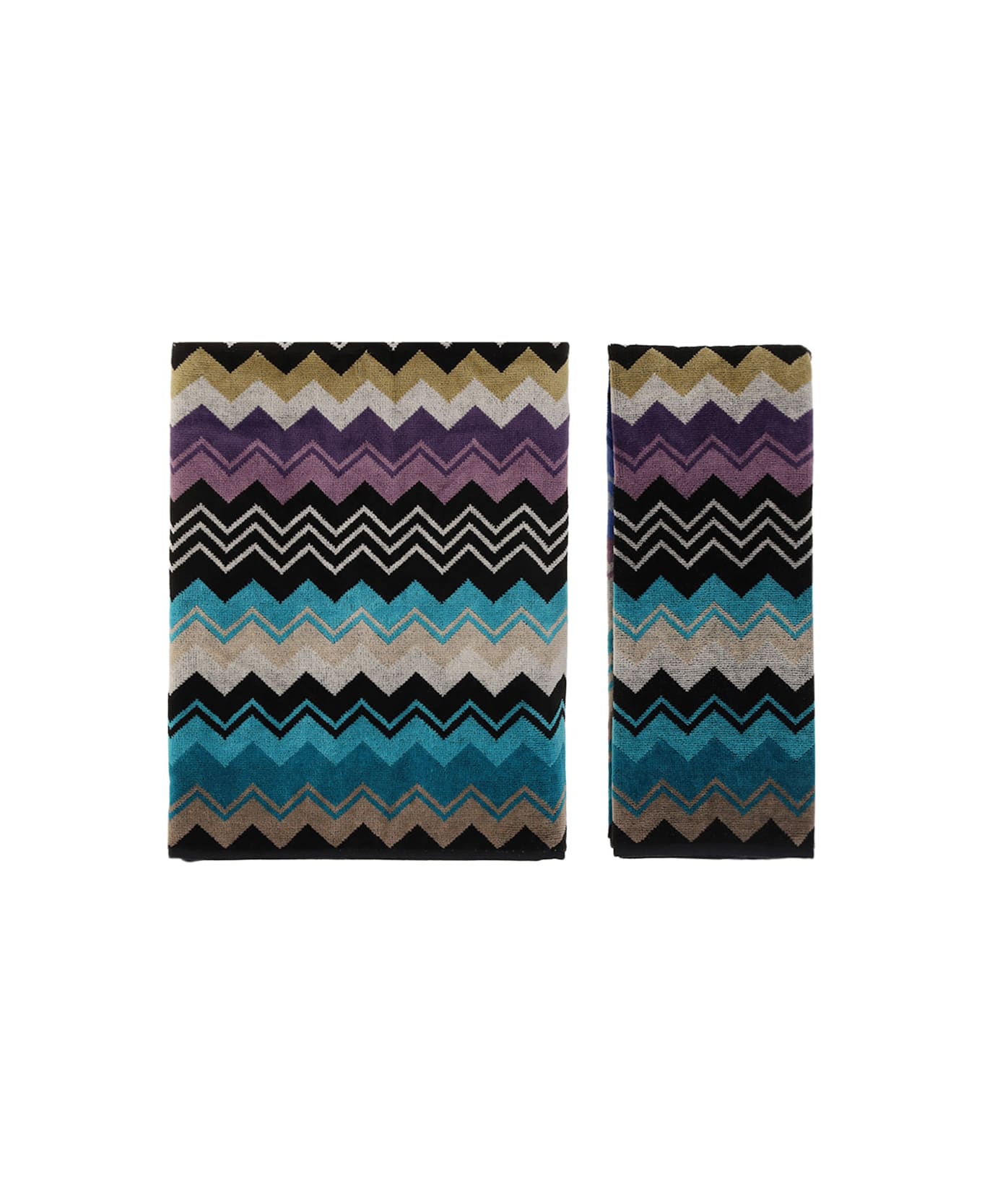 Cotton giacomo towel by missoni, geometric terry-effect design with iconic multi-colored zig-zag pattern repeated all-over. set consists of 2 pieces.