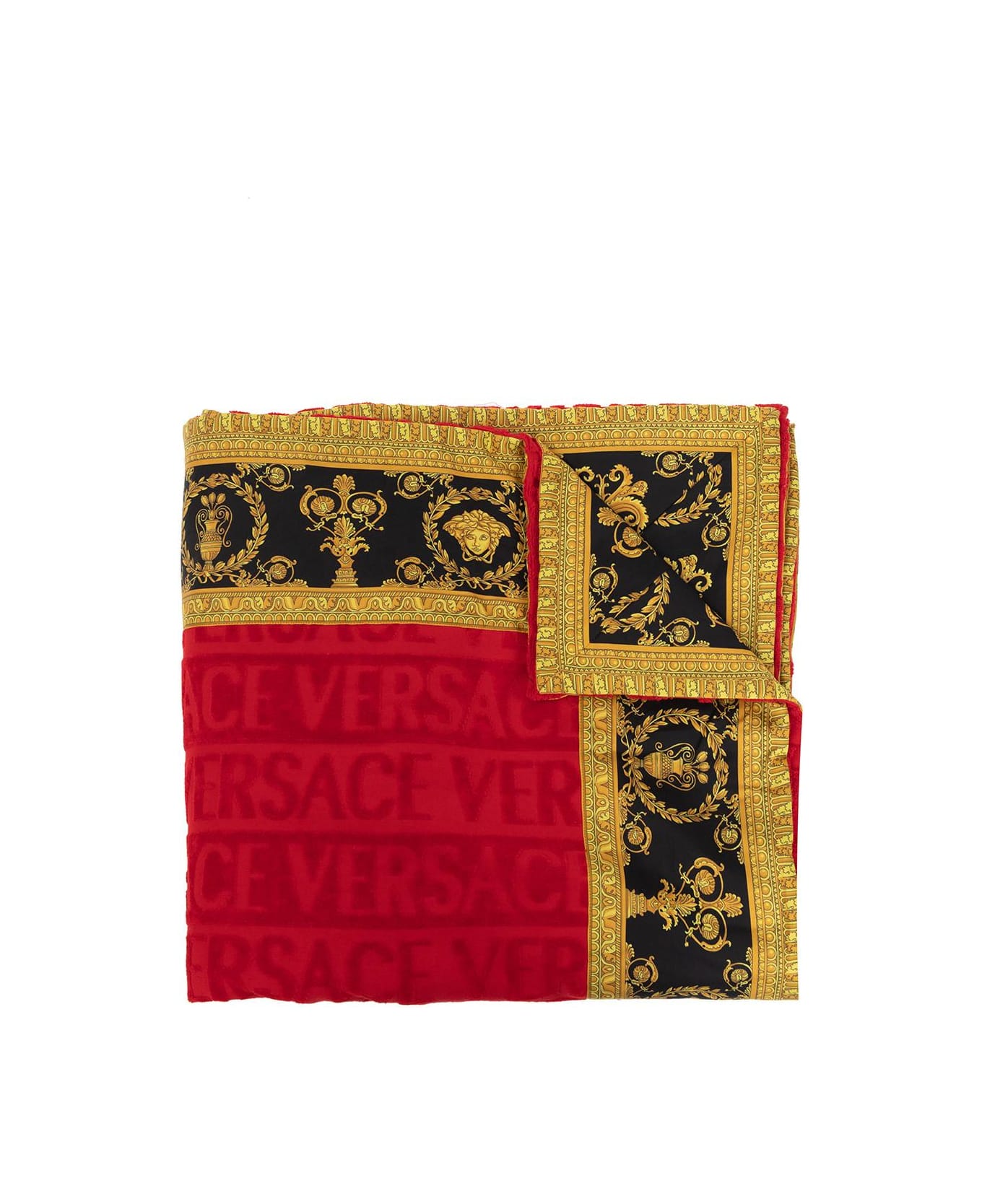 Red towel from Versace. Made of cotton jacquard, this item showcases a trim with the brand's signature ' I Baroque' motif.