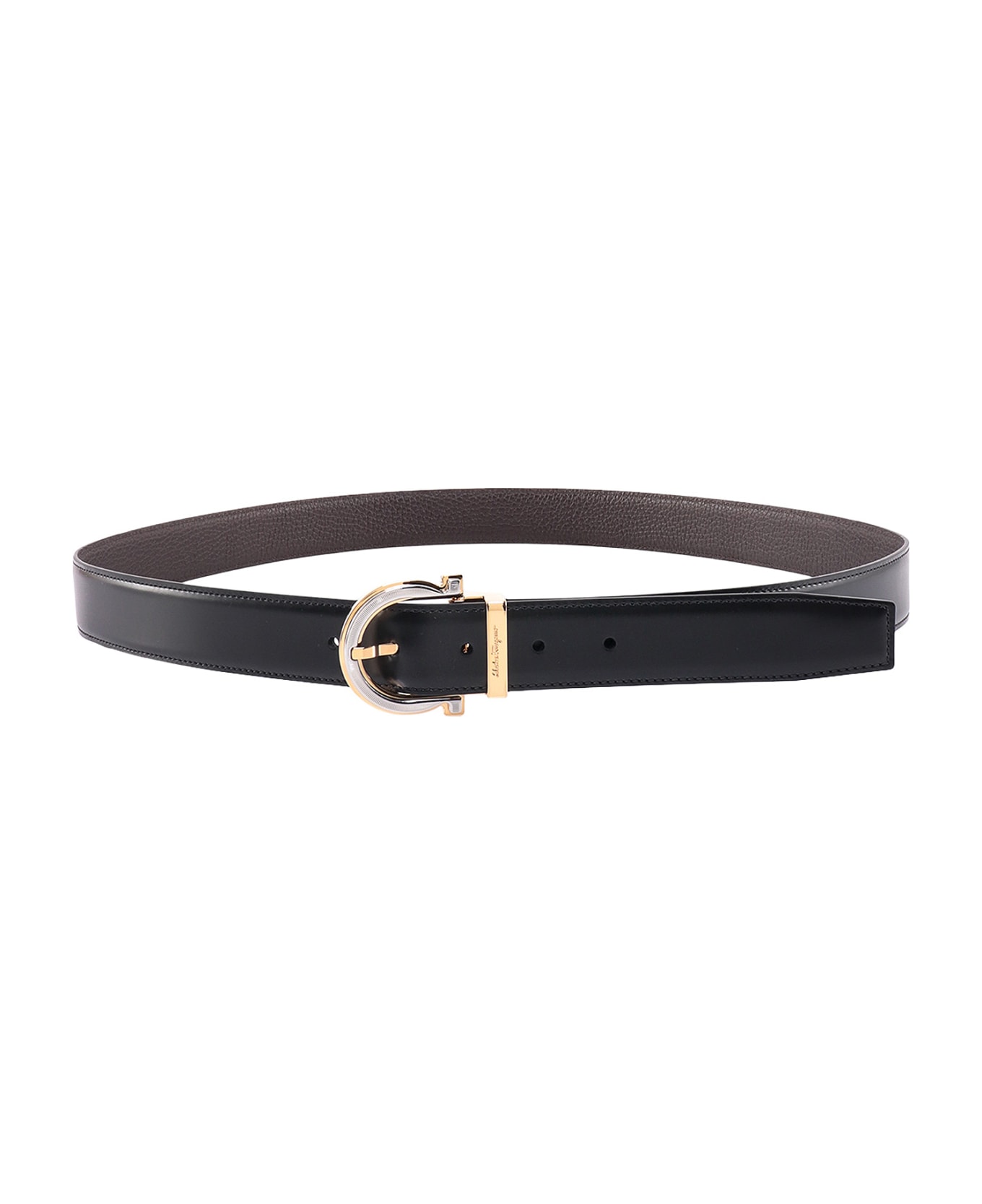 Leather belt - Adjustable Closure - Iconic Gancini Metal Buckle - Reversible - Made In Italy - Leather