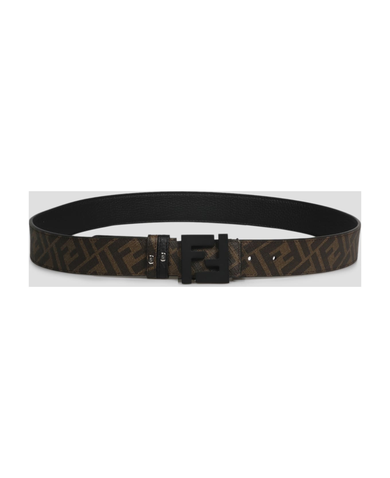 Reversible belt by Fendi, in black Roman leather and FF e-canvas. - FW22