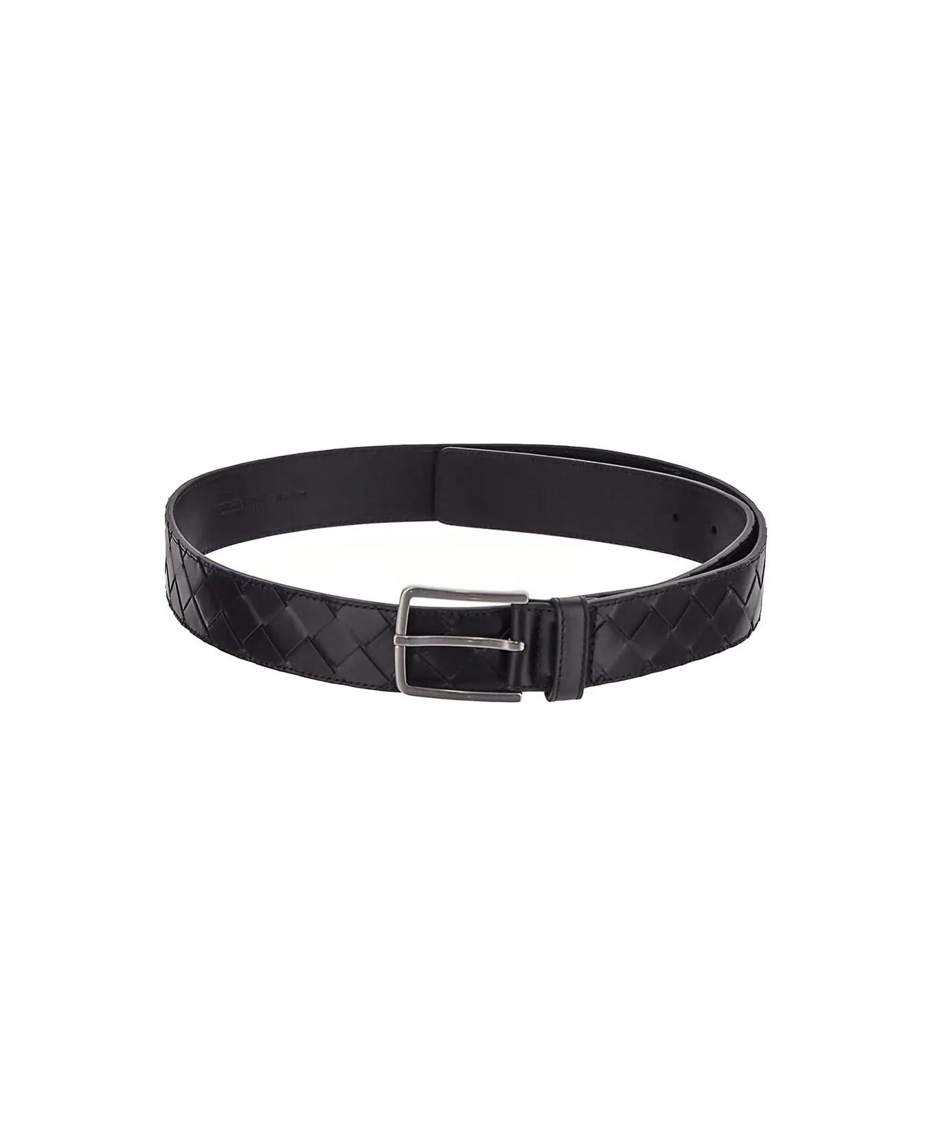 Bottega Veneta belt in black leather with Intrecciato design and silver-finish buckle.