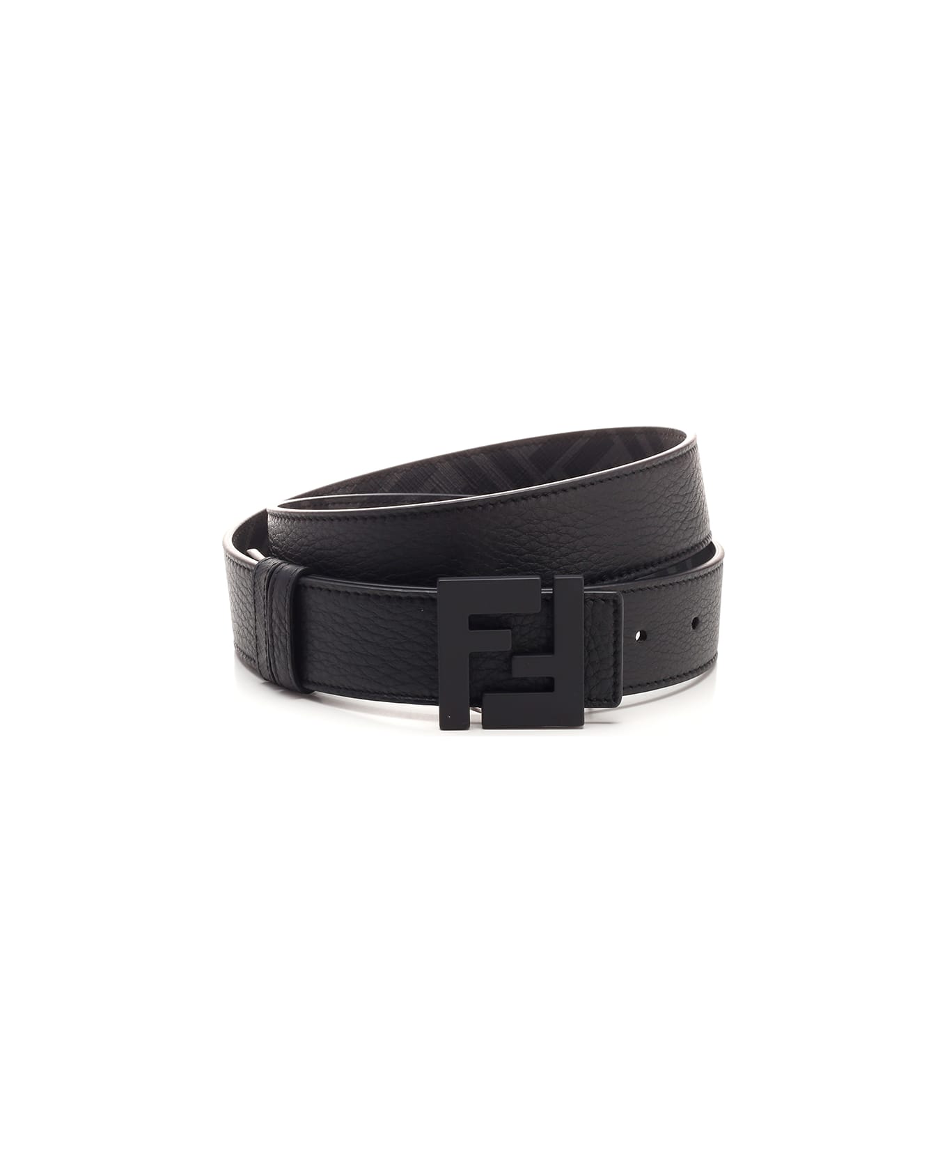 Reversible belt by Fendi in black leather on one side and PU on the other with FF motif in shades of gray and black Composition: 100% CALF LEATHER