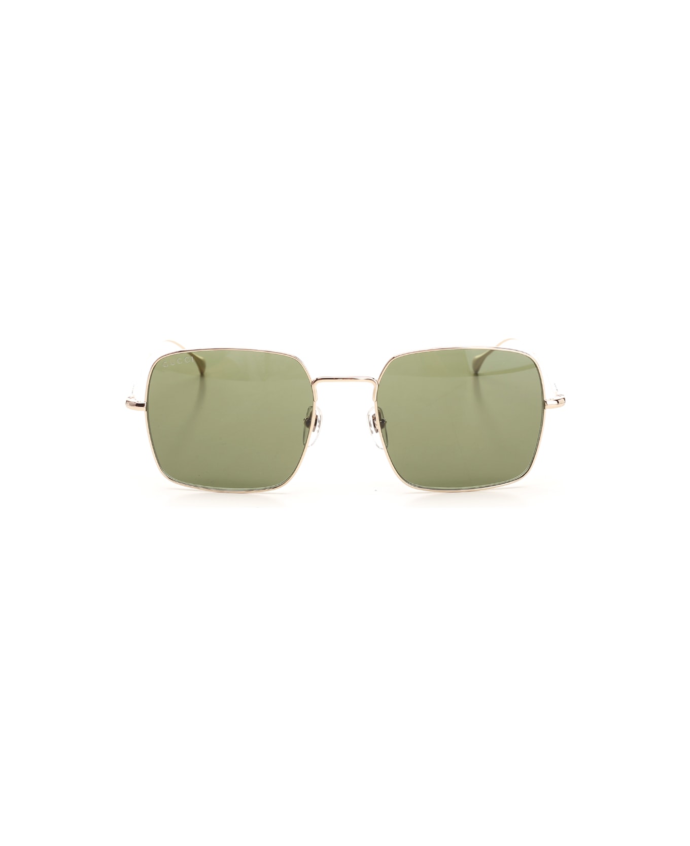 Rectangular glasses with shiny gold metal frame by Gucci with green lenses.