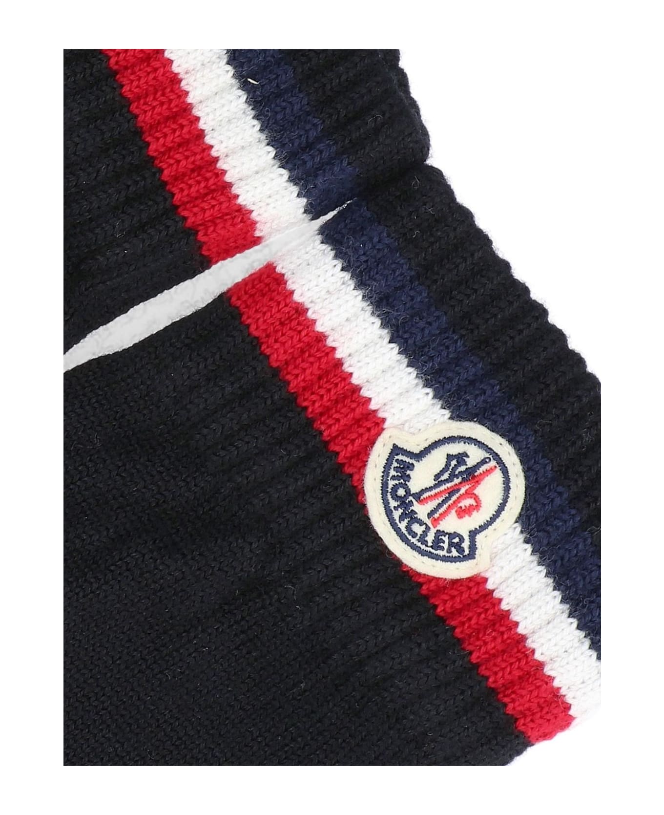 Moncler logo gloves, in black wool, tricolor details, multicolor logo patch on the front, ribbed trim.