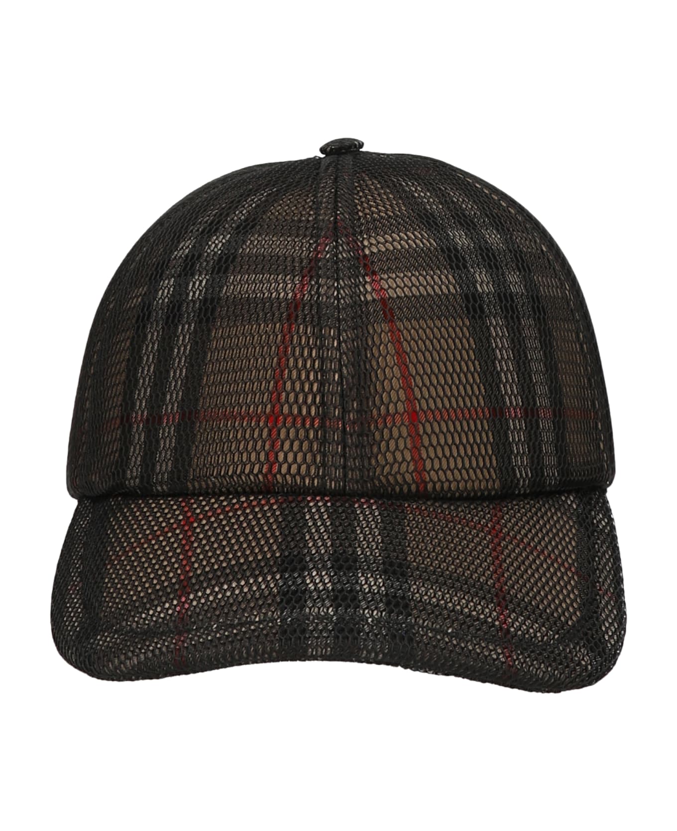 Cotton cap with mesh fabric layer overlapped, Burberry tartan pattern, a clip adjustable closure. Composition: 57% cotton 43% polyester